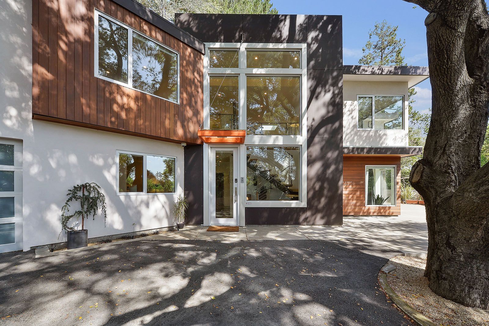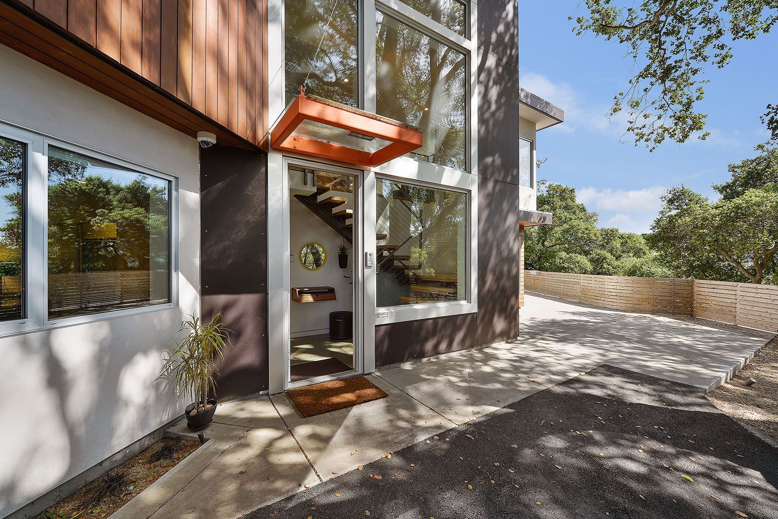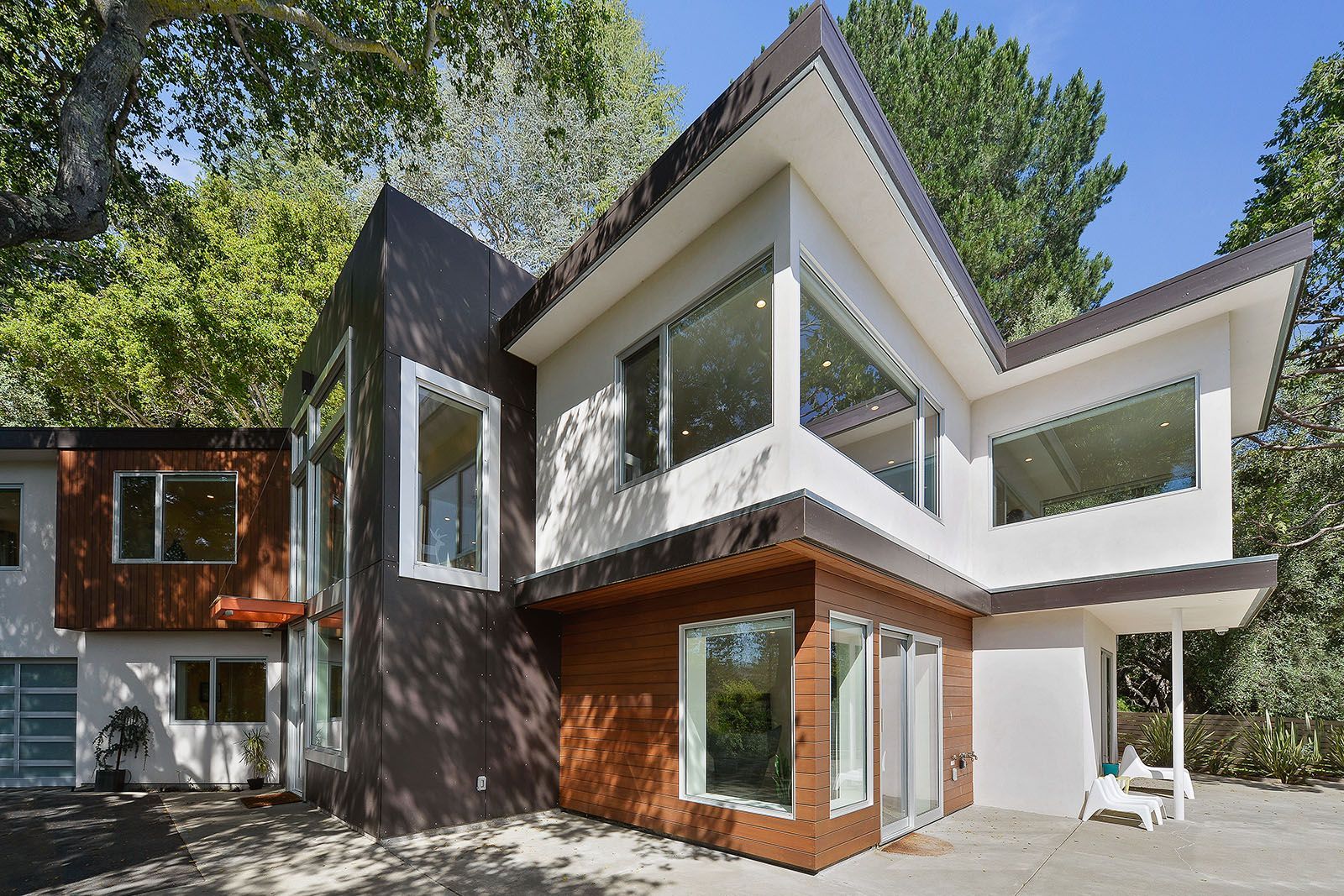 - Midcentury modern design with a striking linear facade.