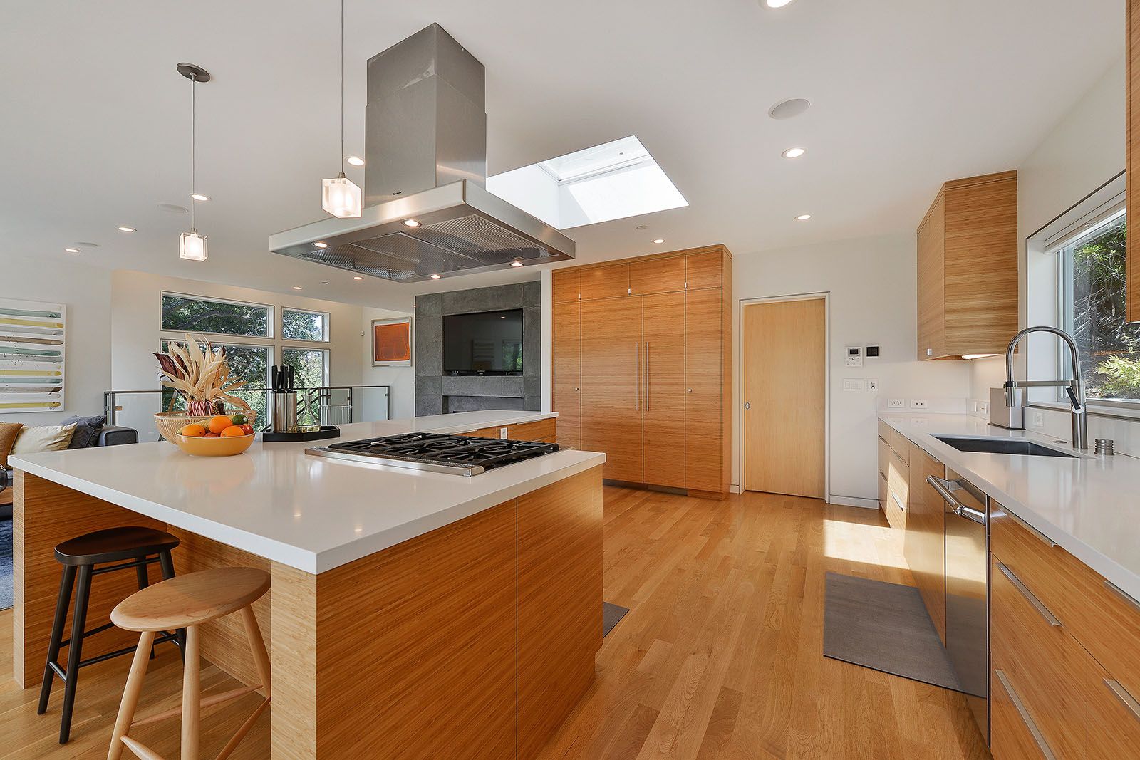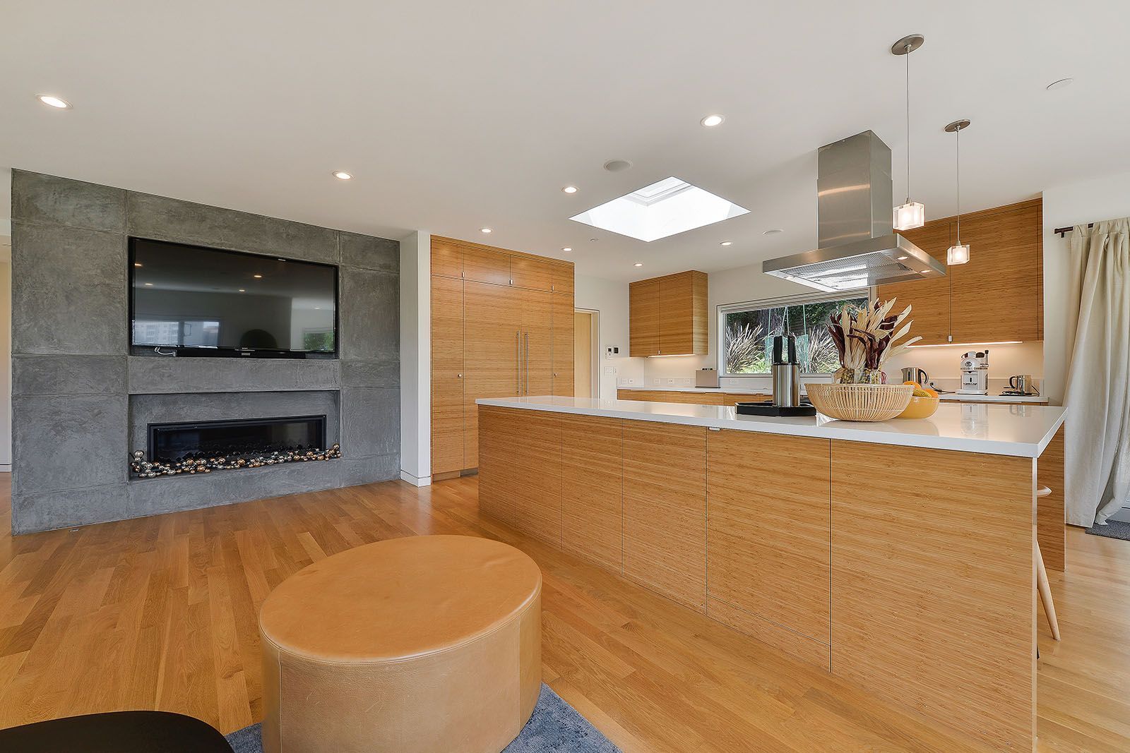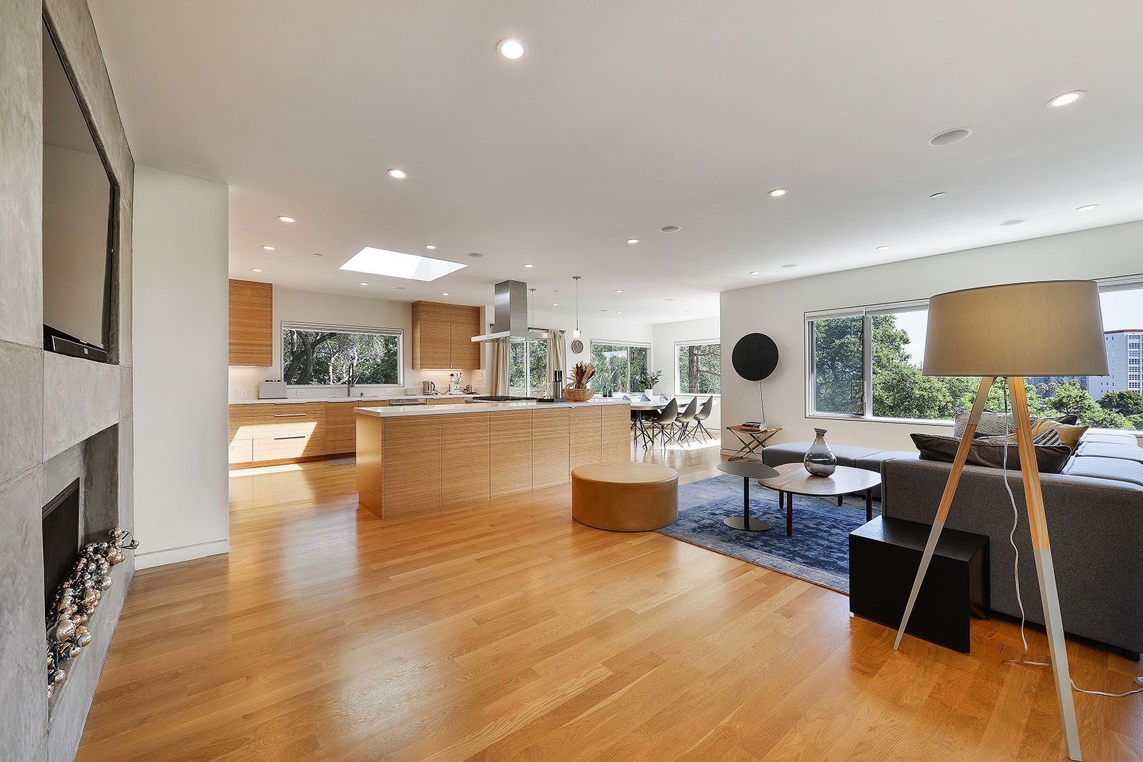 - Open concept great room with skylights and oversized windows.