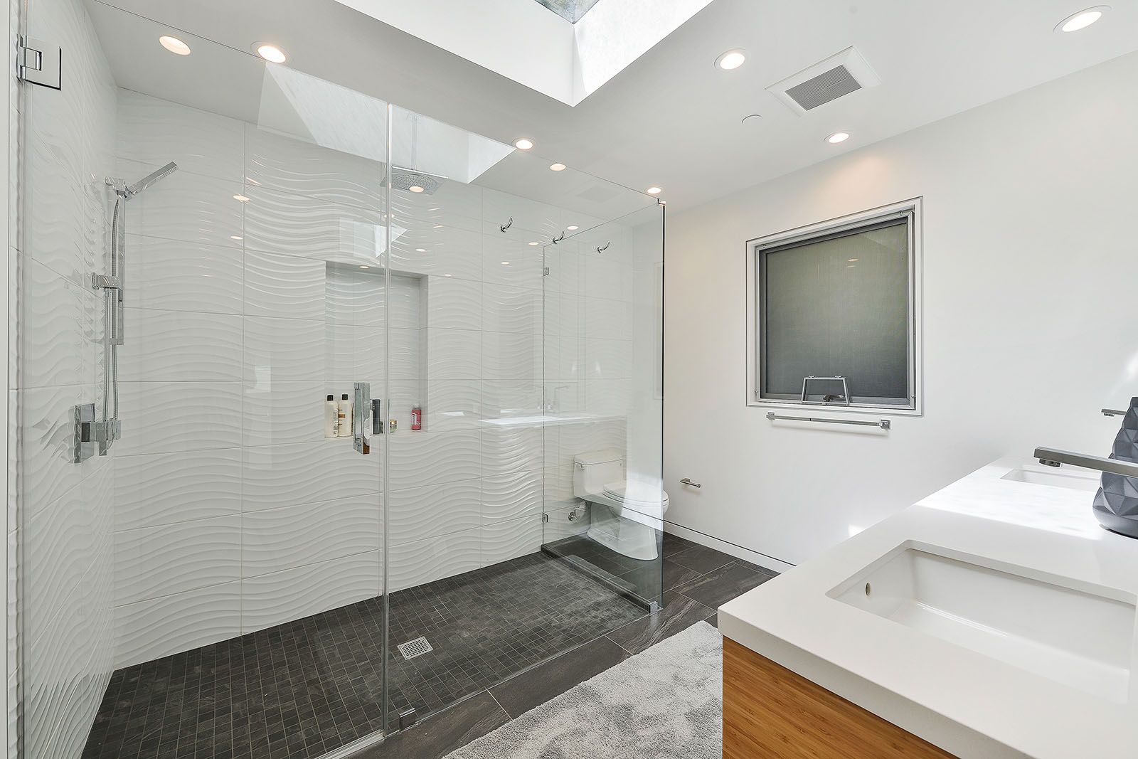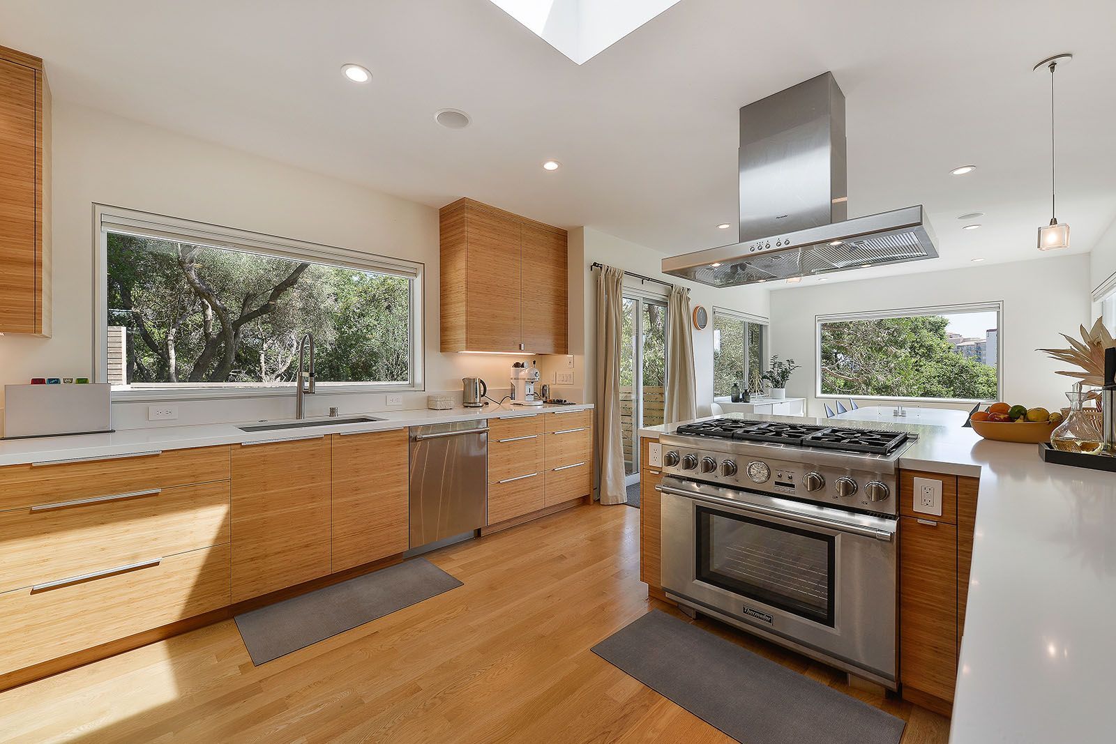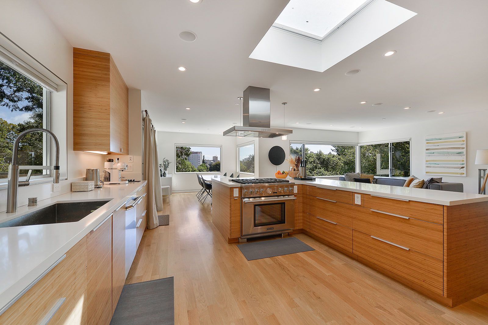 - Open concept great room with skylights and oversized windows.