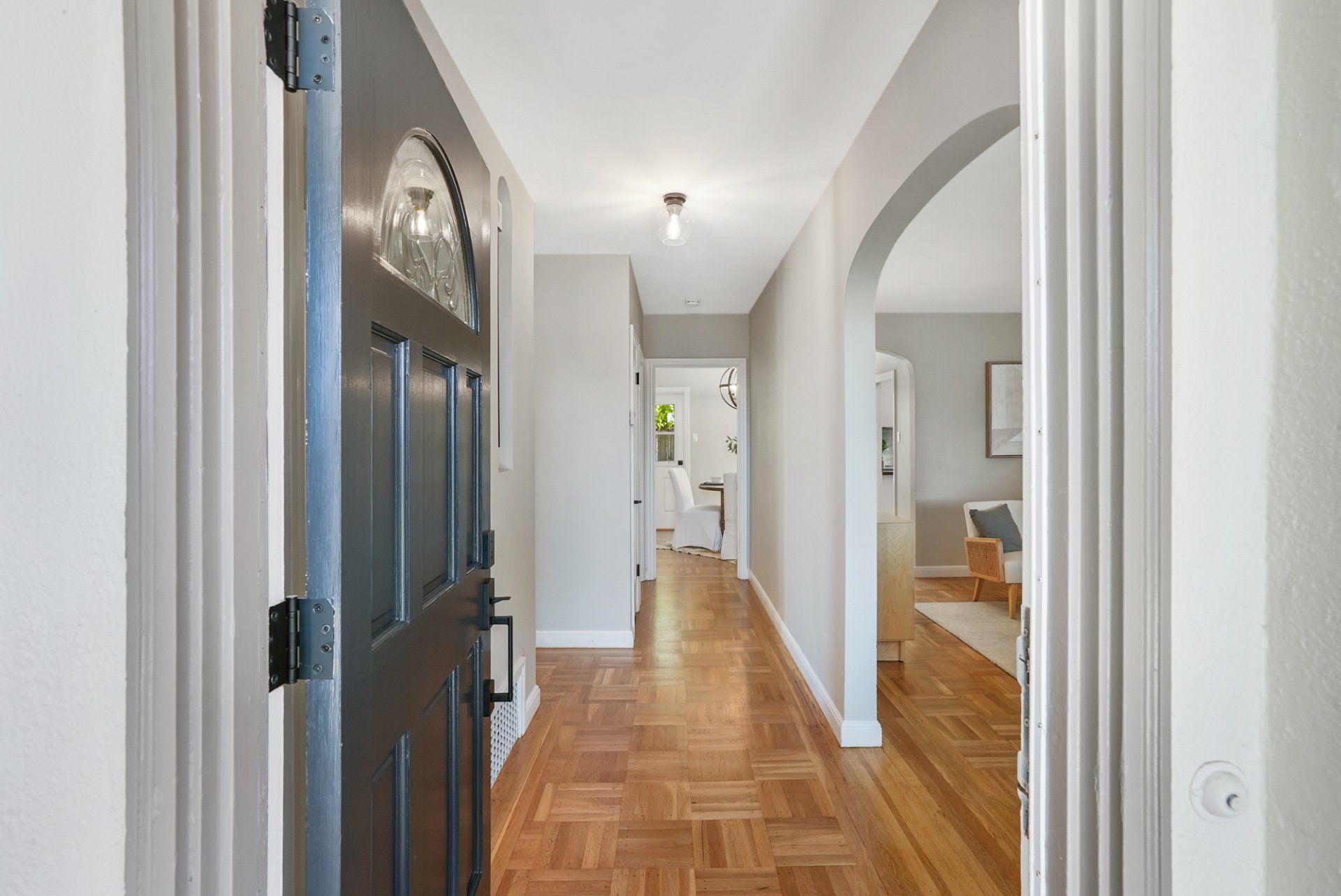 - Charming details like parquet hardwood, archways, and a vintage doorbell.
