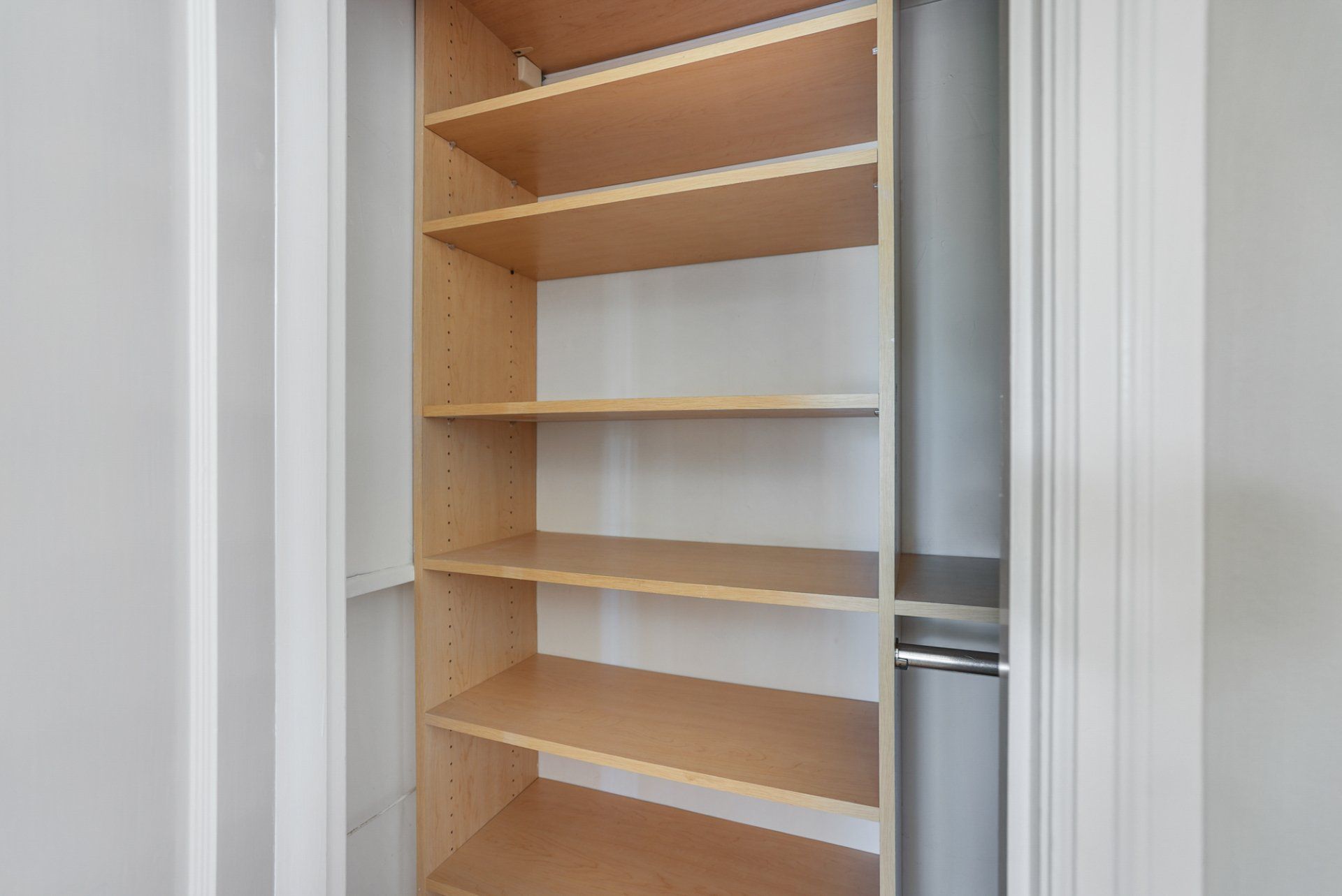 On your right, enter the sunny kitchen, complete with a breakfast nook. Just renovated with white shaker cabinetry, gray quartz countertops, gray hex format tile, and linen shadow polished ceramic tile backsplash. This chef inspired kitchen is well-equipped with a deep stainless steel sink, Samsung SmartThings gas range, Samsung refrigerator, and Samsung dishwasher. Adjacent to the stove a built-in ironing cabinet has been converted to spice cabinet, another nod to the home’s charm.