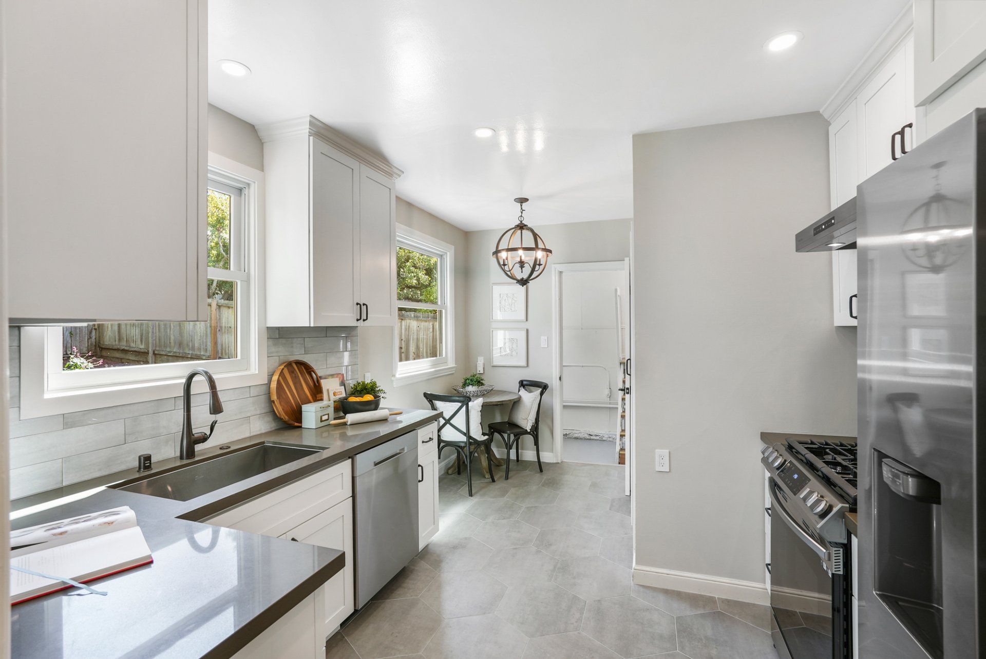 Excellent location | Nearby parks | Nearby shopping | Mature landscaping | Japanese maples | Paver driveway | Covered front porch | Arched Doorways | Refinished Parquet Hardwood Floors | Vintage Doorbell | Anderson Double-Pane Windows | Formal Living Room | Wood-burning fireplace | Formal Dining Room | Wooden chandeliers | Renovated kitchen | Quartz countertops | White Shaker-style Cabinetry | Samsung SmartThings Gas Range | Samsung Side-by-Side Refrigerator | Samsung Dishwasher | Deep Stainless Steel Kitchen Sink | Breakfast Nook | Mudroom | Side-by-side Laundry Hookups | Storage Loft | Single-car Garage | Built-in Closet Organizers | Covered back porch | Patio | Grassy Lawn | Rose bushes | Wisteria | Weeping Willow | Birch Trees | Producing Citrus Tree | Bird of Paradise | Fresh Landscaping