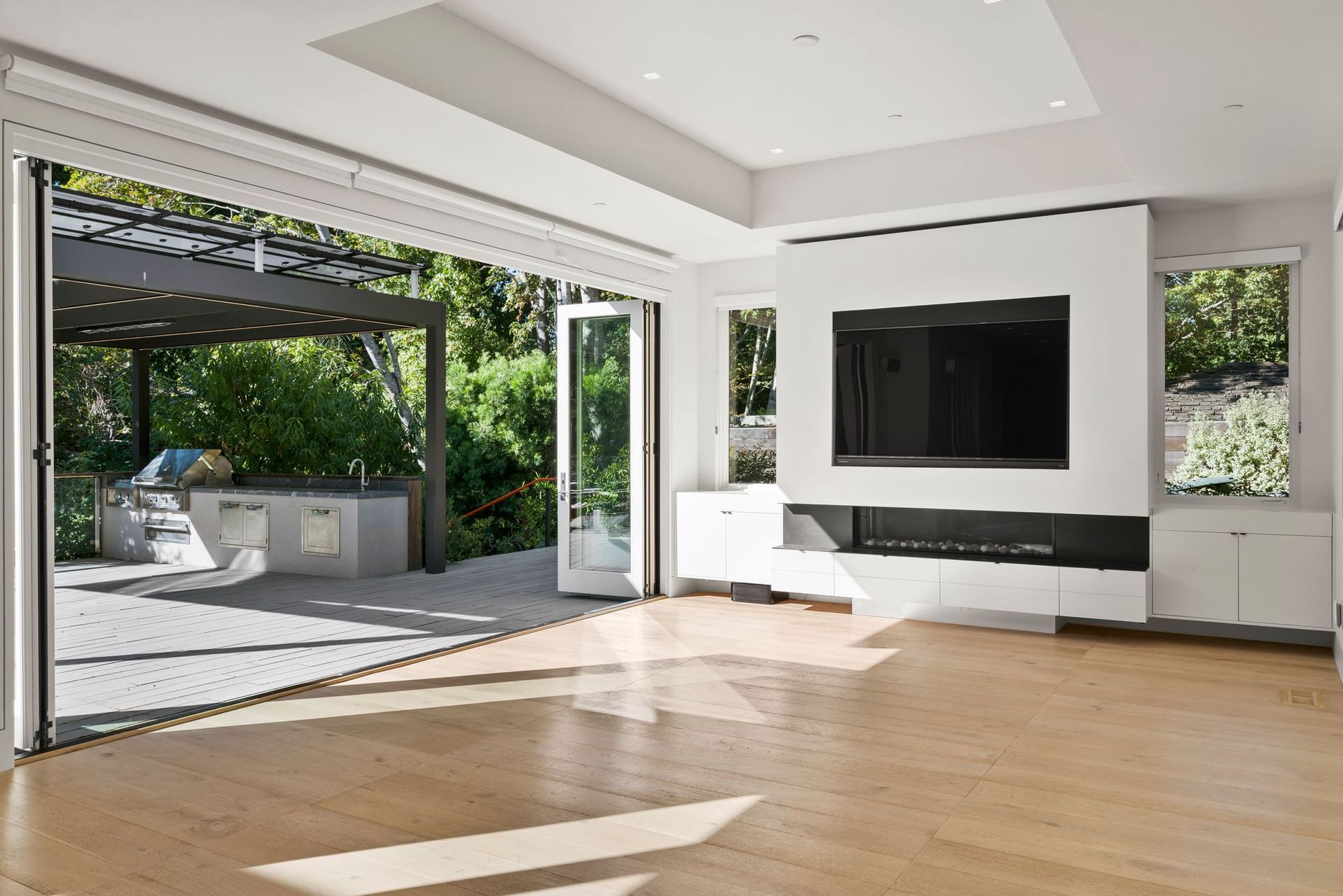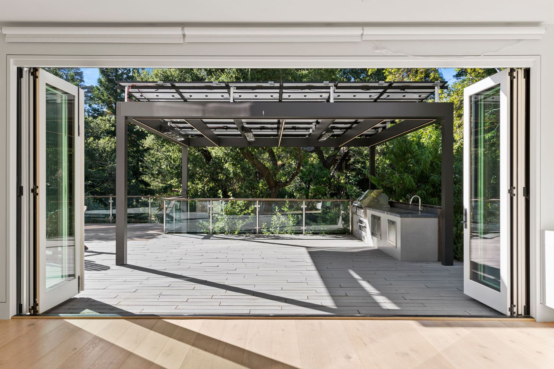 - Secondary living space with large infinity doors that opens the entire space up to an elevated back deck.