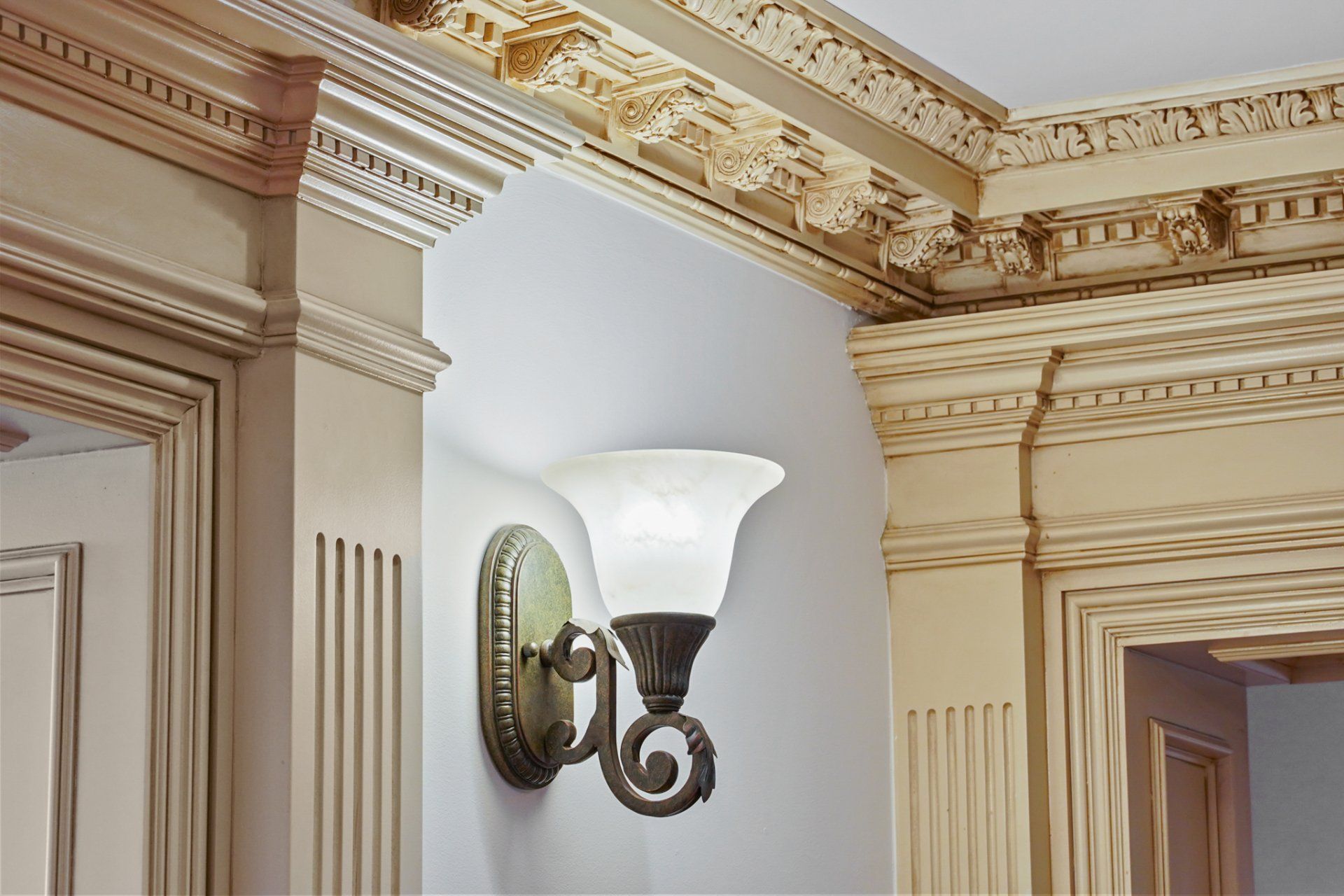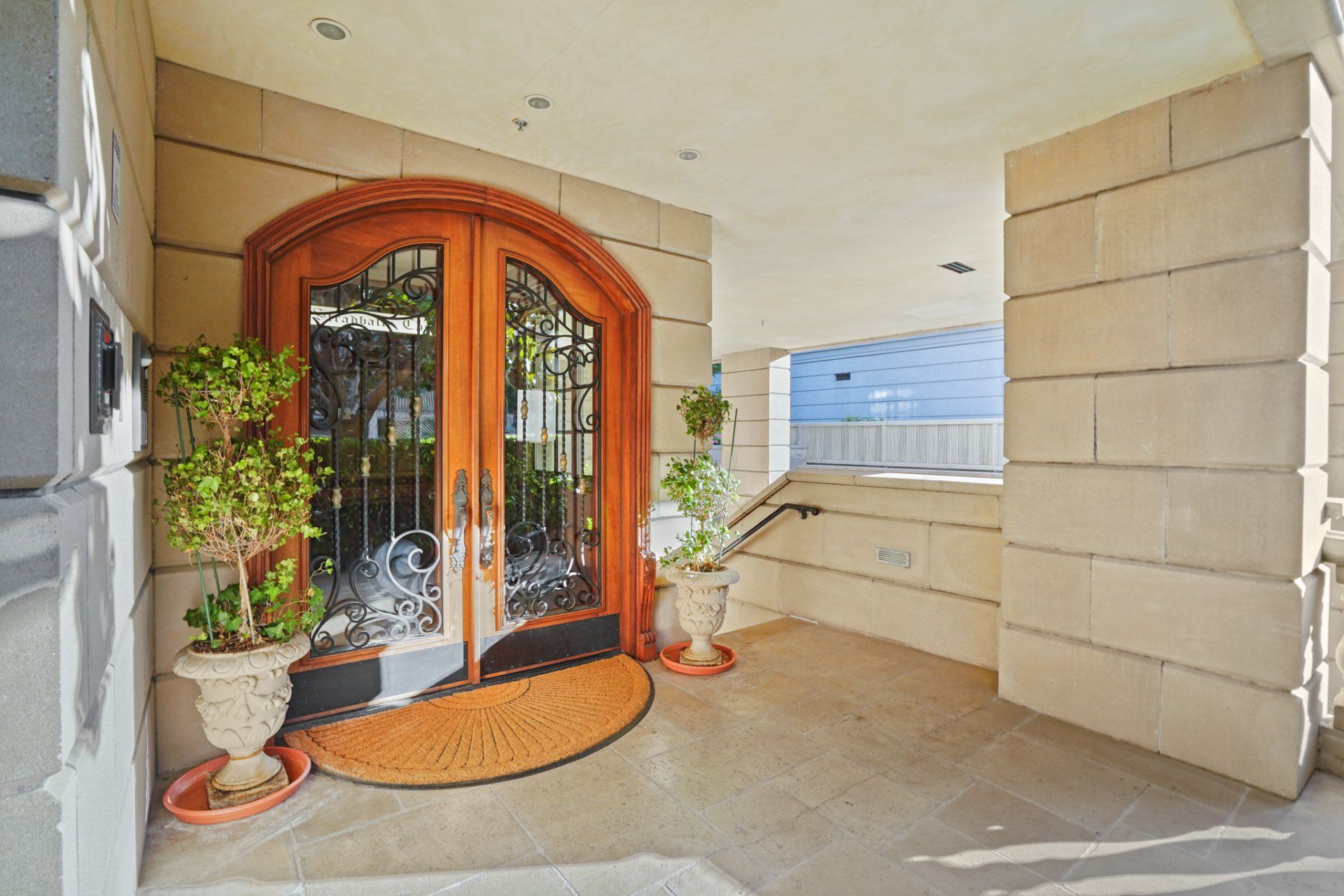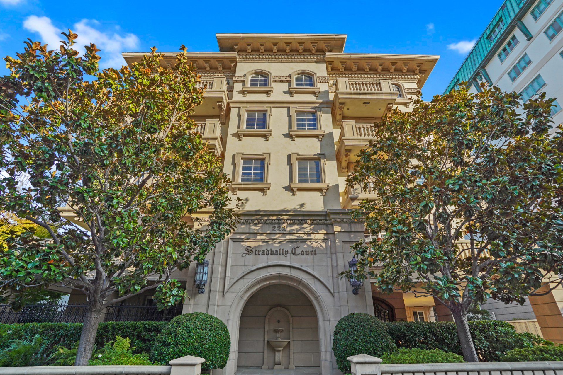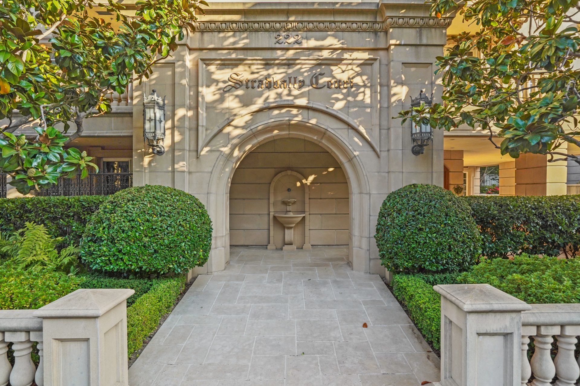 - Public spaces at Stradbally Court features mahogany wainscoting, embellished coffered ceilings, and ornately carved residence doors.