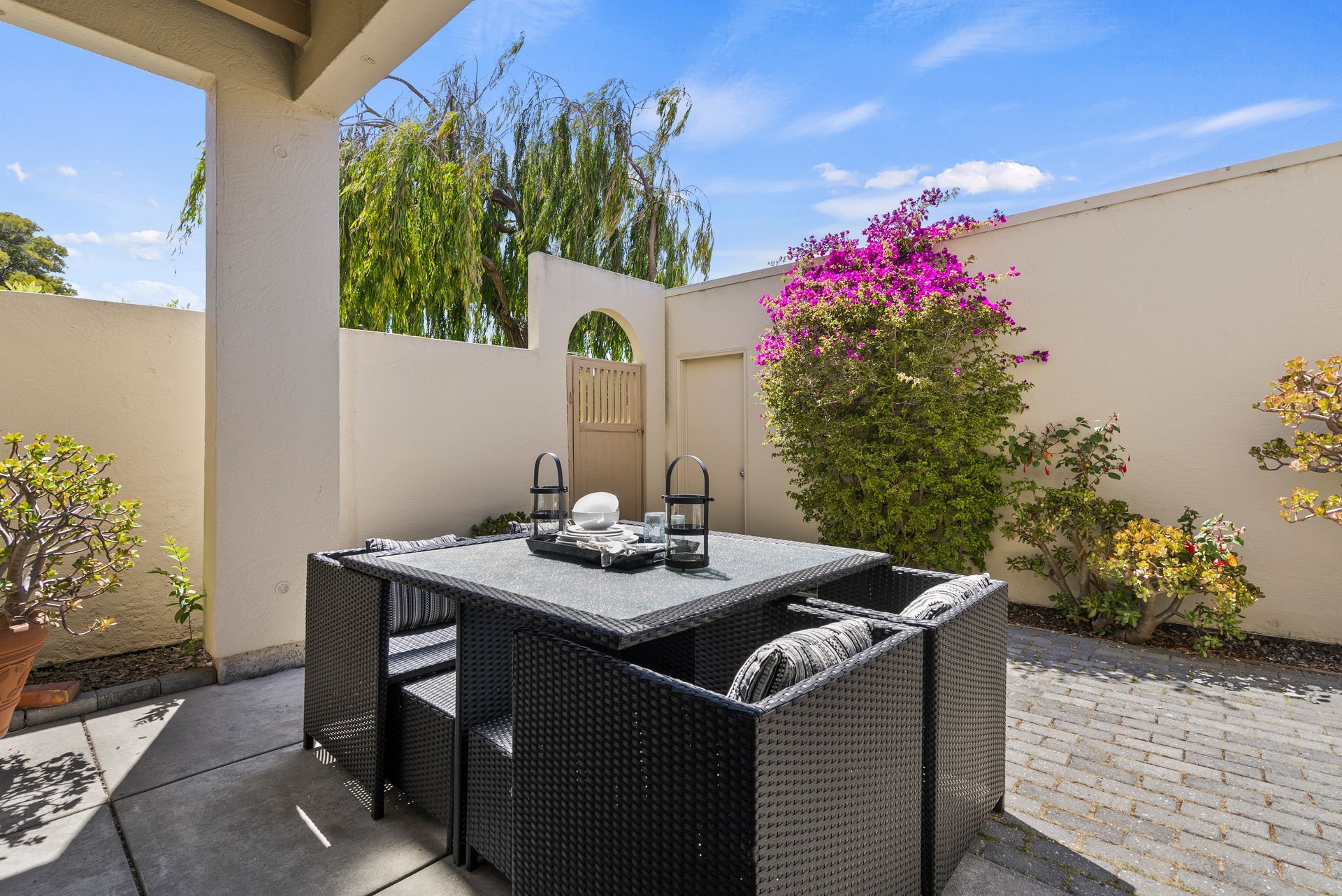 - Spacious stone-lined courtyard with direct access to the front yard, single-car garage, and storage closets.
