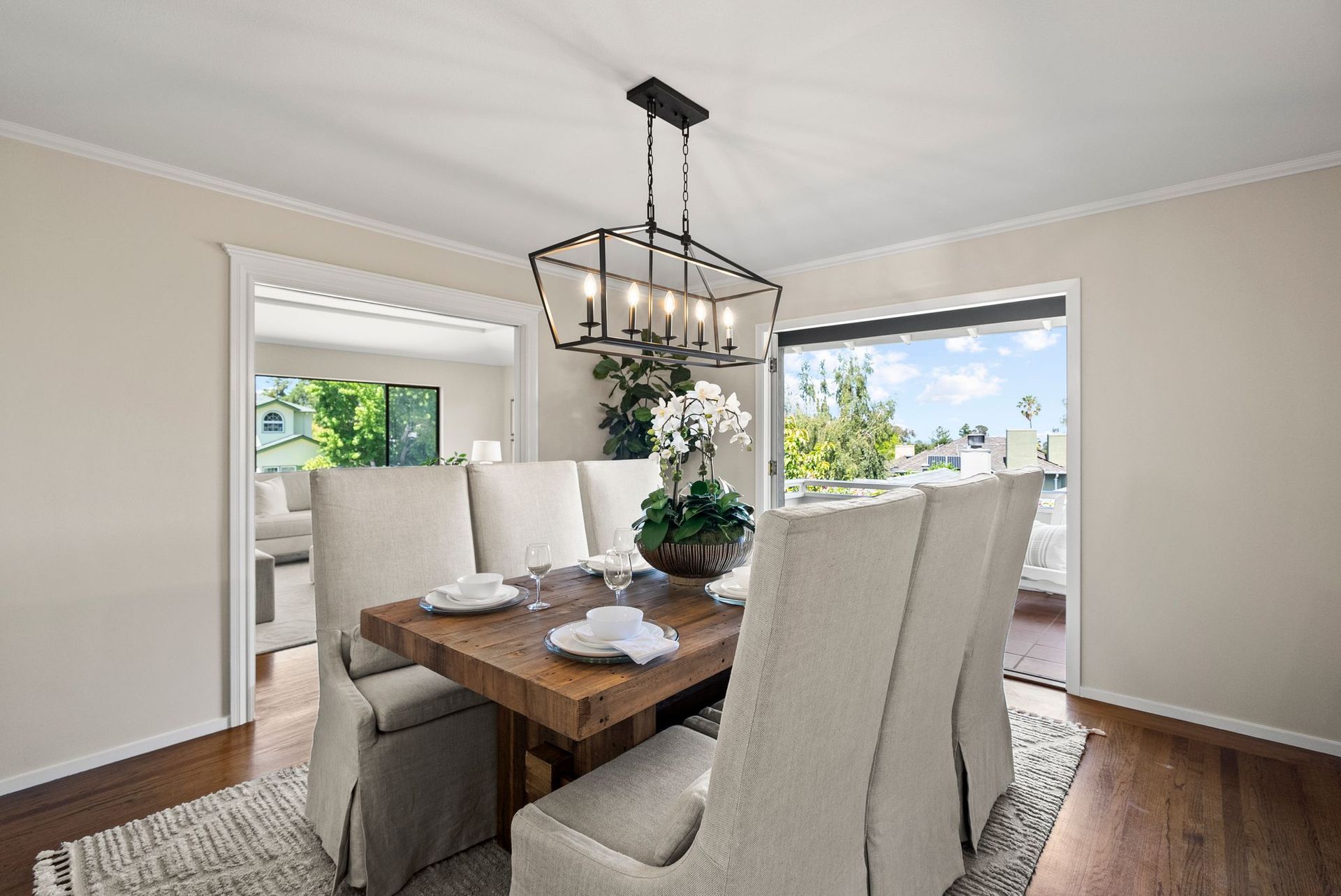 - Formal dining room with a balcony overlooking the landscaping and with peekaboo bay views.