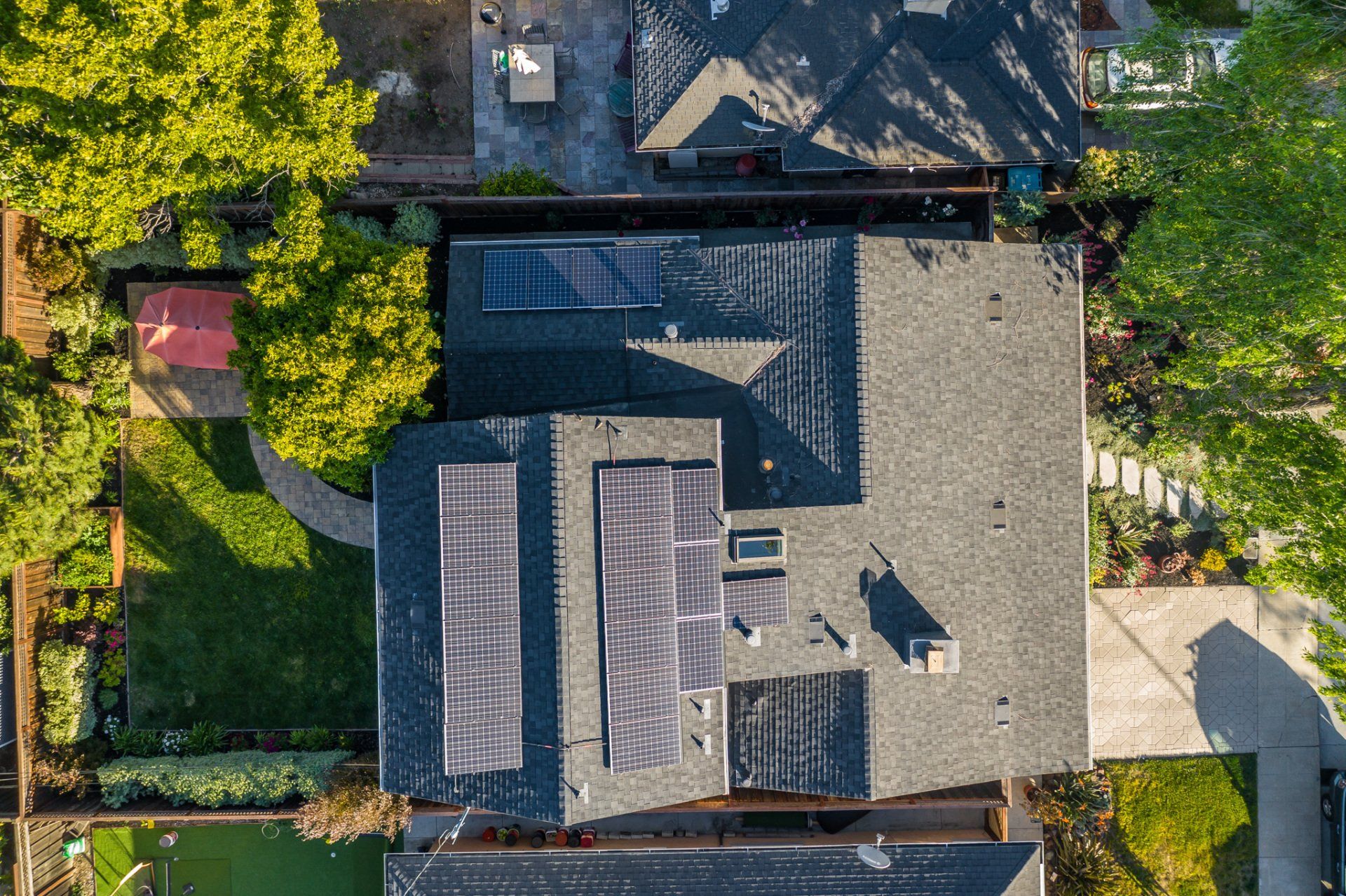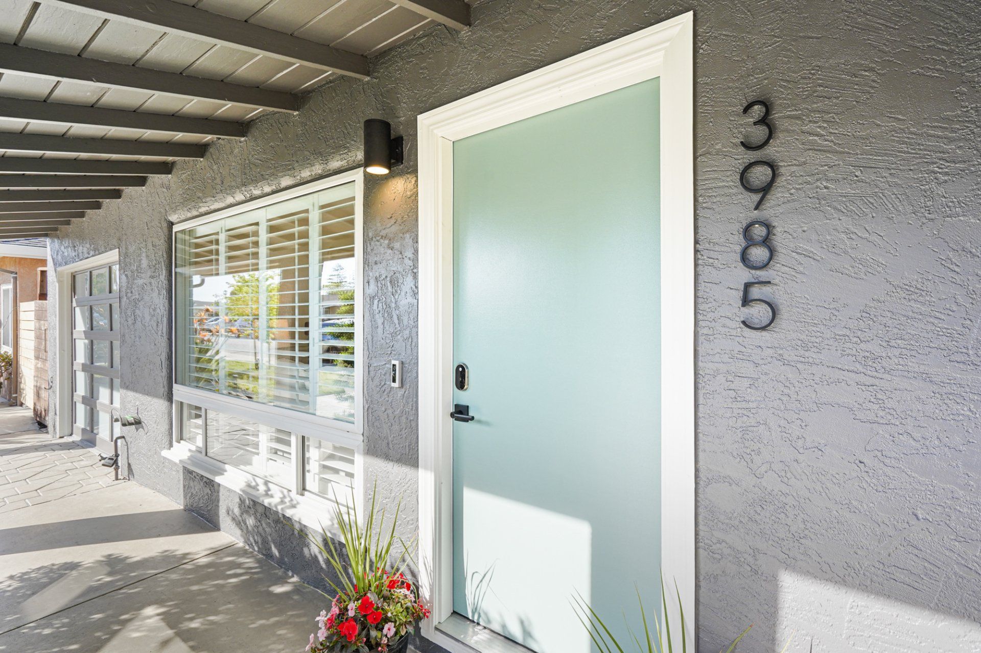 A one-car garage has a glass-paneled garage door and window to allow in natural light, and a side door provide access to the rear yard. The garage features an EV charging station, epoxy coated floors, full-sized washer and dryer, and additional storage space. This home is host to a number of updates, including solar panels, multi-zone slim-line air conditioning, a recently replaced furnace, and smart home features like Yale Smartlock, Nest thermostats, and Nest Protect.