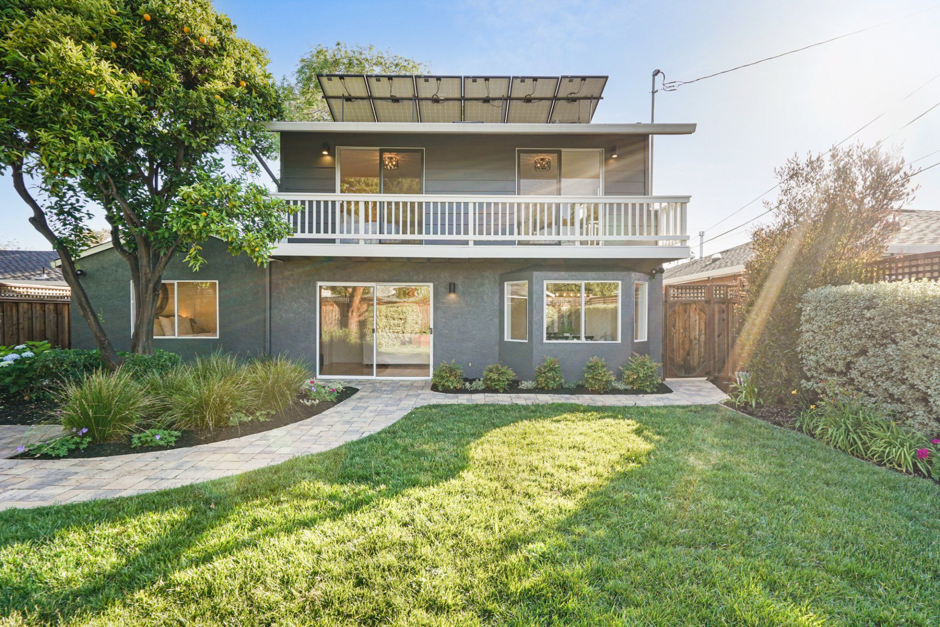 - Multiple outdoor spaces with new landscaping, private wooden fencing, orange, and lime trees, raised garden bed, rose bushes, front porch, back patio, and second-story rear balcony running the width of the house.