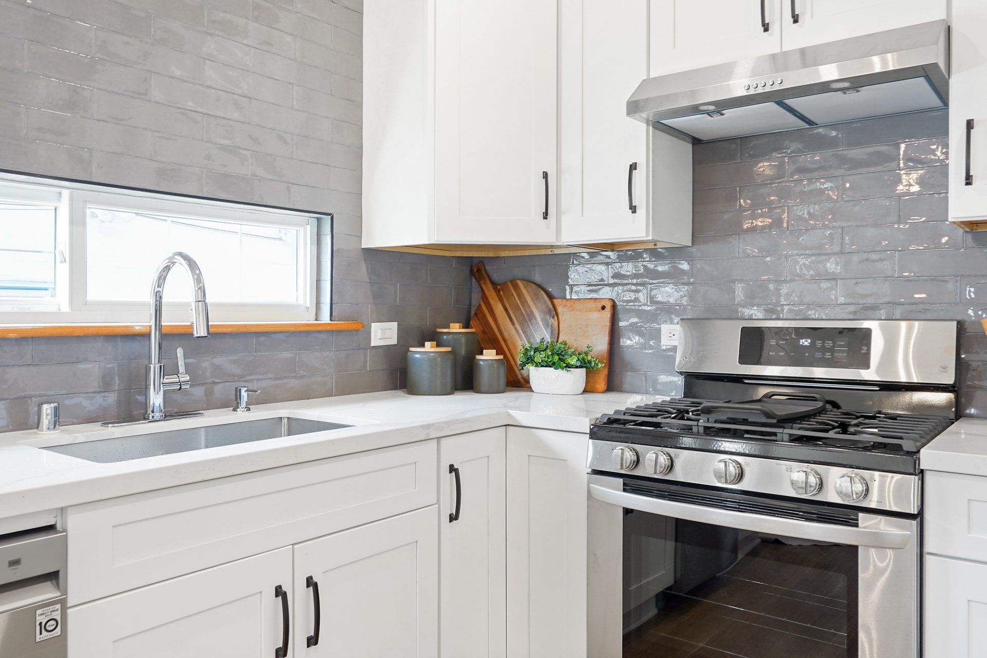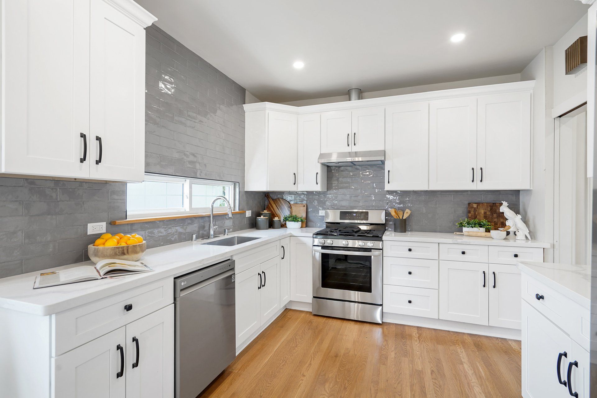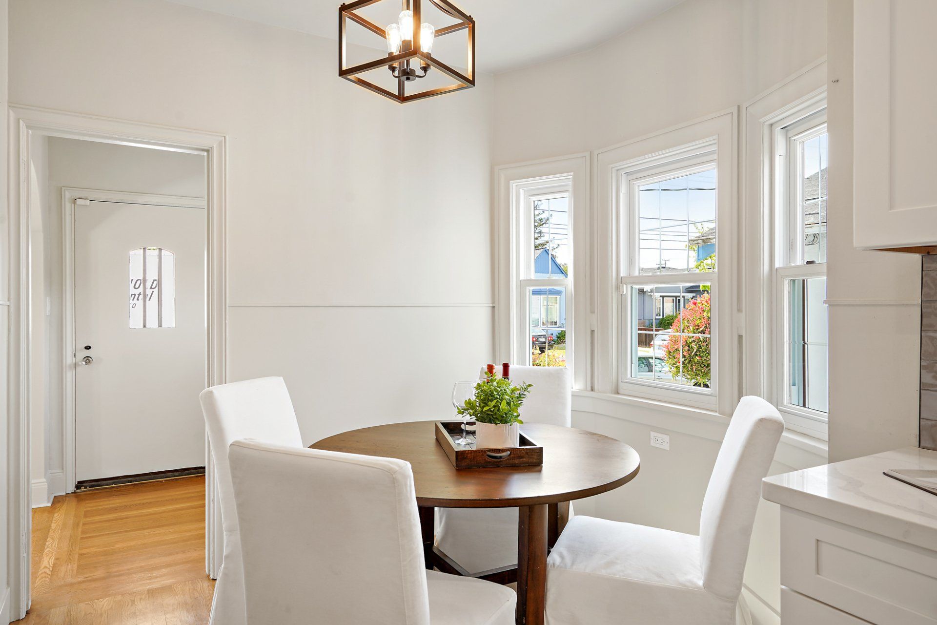 - The newly updated kitchen is the heart of the home, with quartz counters, stainless steel appliances, and a delightful breakfast nook with a bay window.