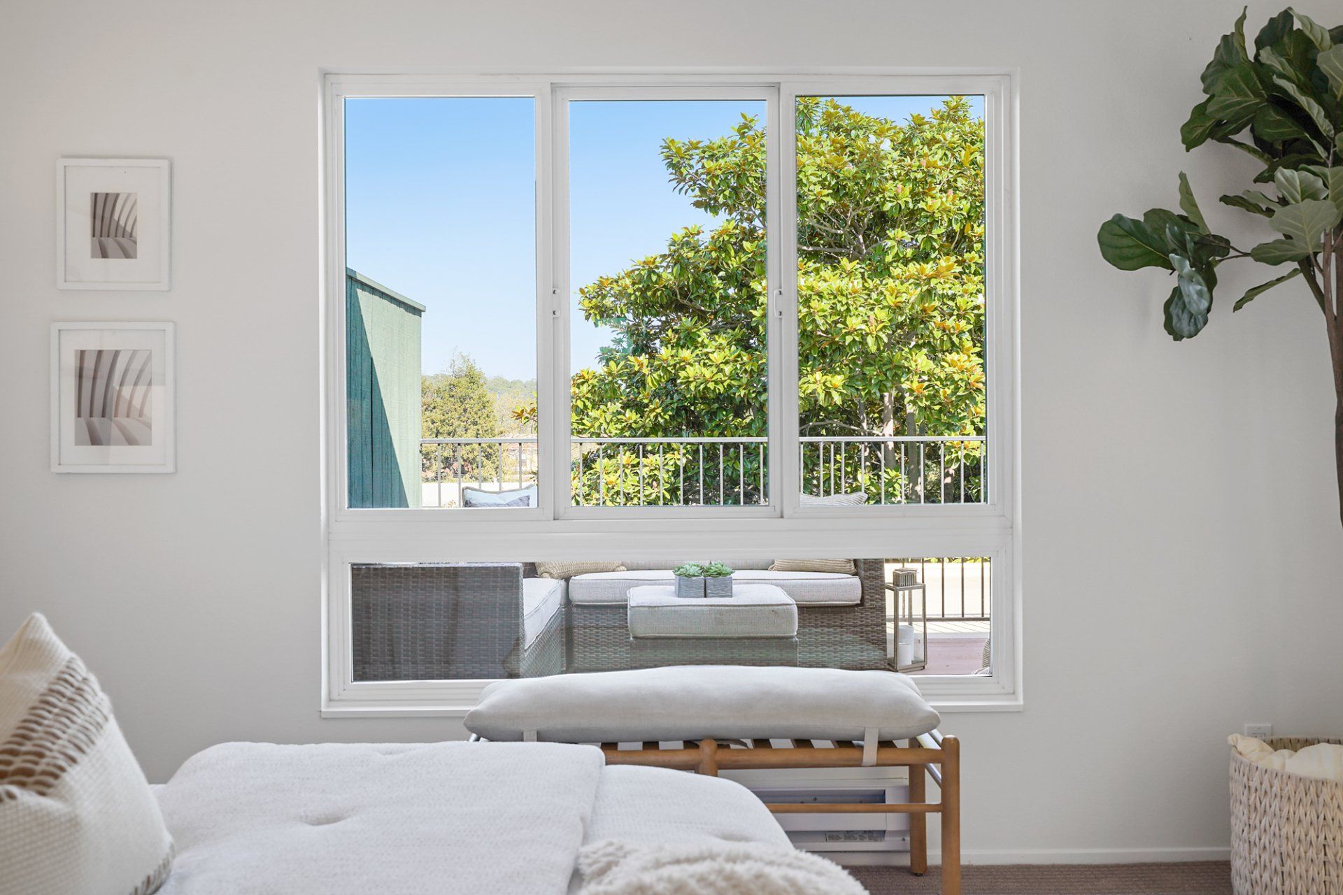 New, plush carpeting extends before you as you move into the spacious living room. A wall of glass sliders invites warm natural light and fresh air from a wide-reaching balcony, offering plenty of space for entertaining and hosting to your heart’s content. A delightful Magnolia tree adds a touch of elegance, and a built-in sink brings convenience to any outdoor project.