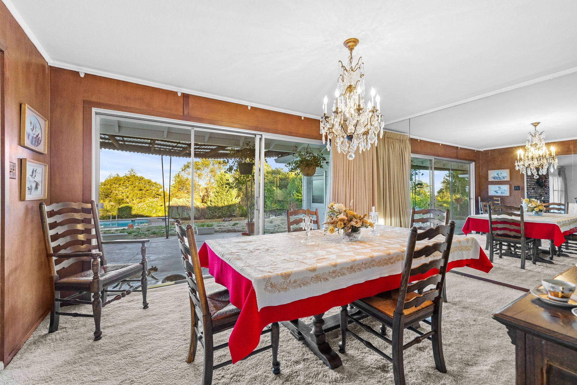 - Formal dining space opens to a covered patio for effortless indoor-outdoor flow, ideal for entertaining.