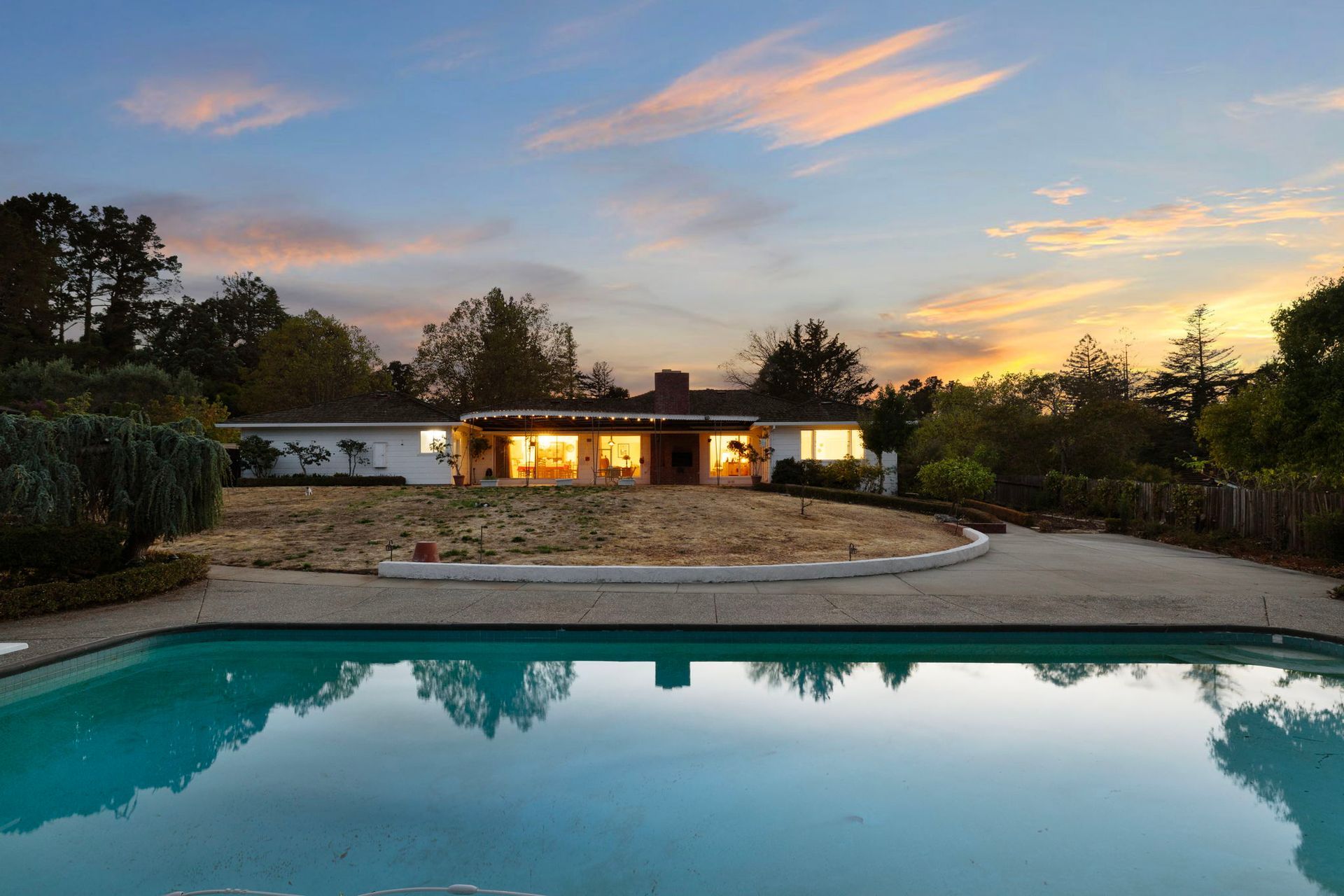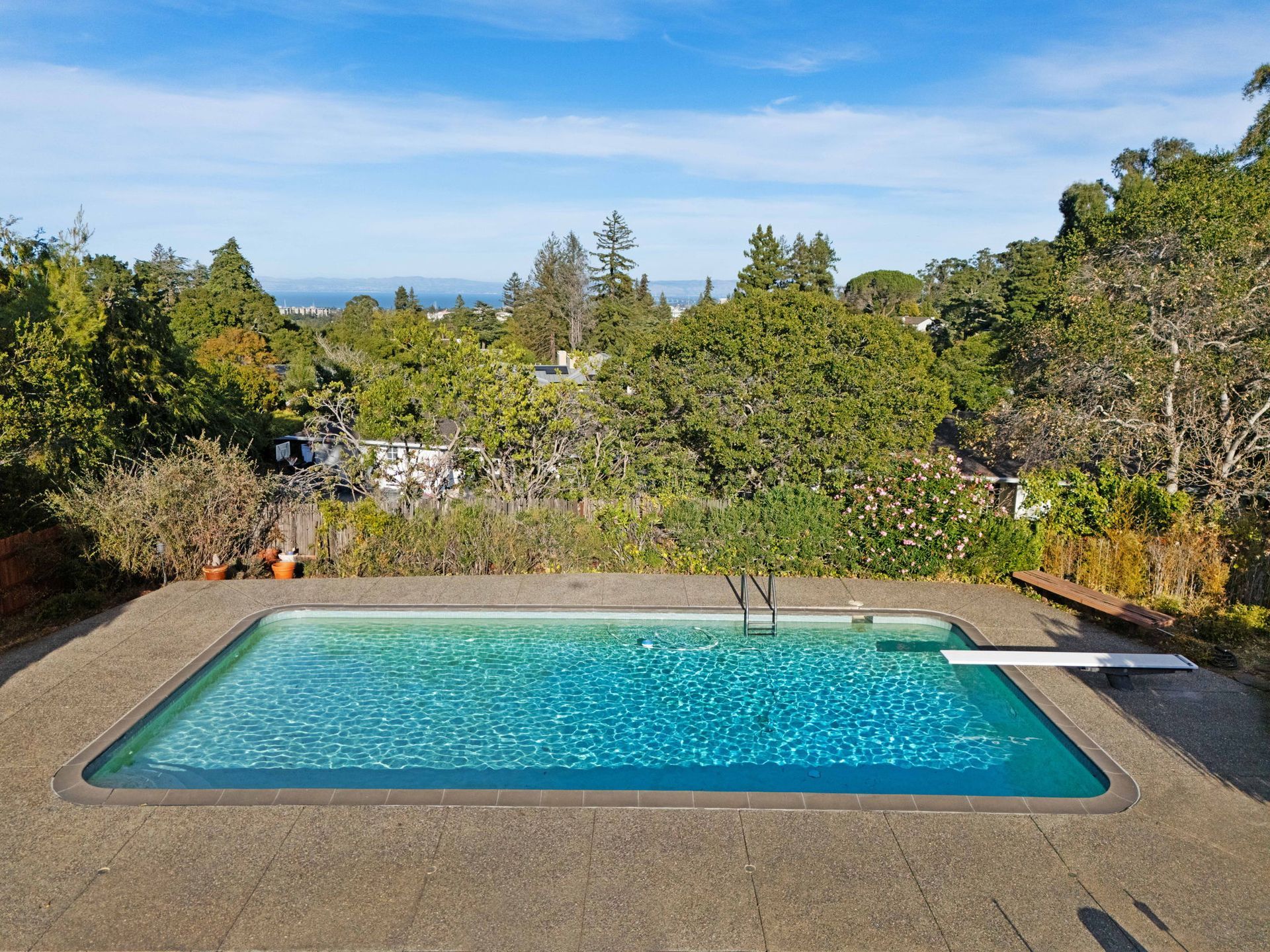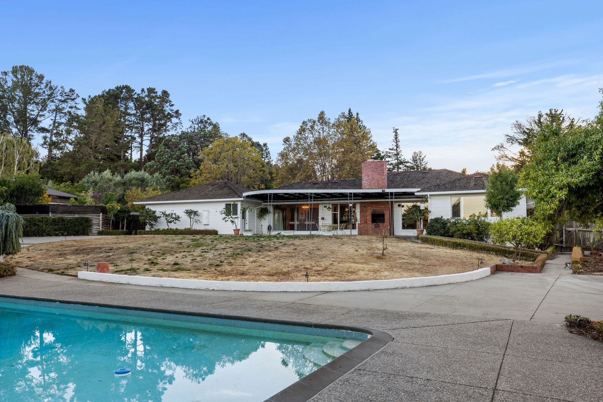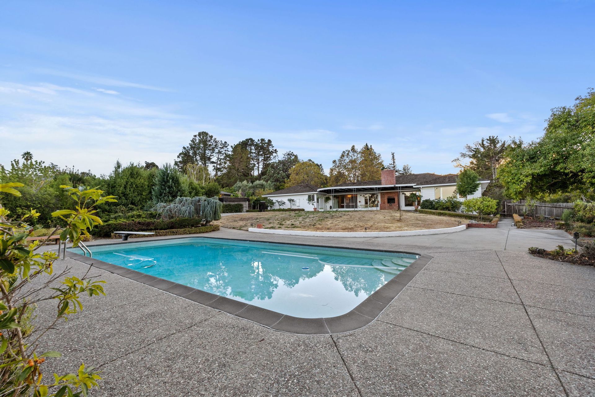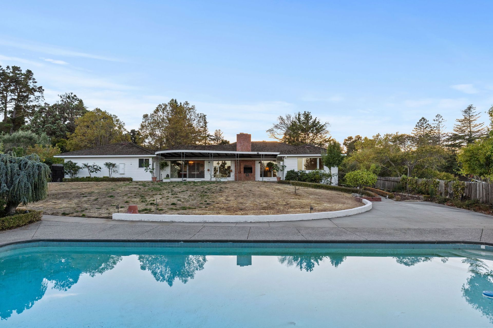 The bedroom wing includes the expansive primary en-suite with gorgeous views and opens to the patio and yard beyond. Two spacious secondary bedrooms and hall bath complete the private quarters. Outside, the patio embodies quintessential California living, serving as an extension of the home with ample space for both outdoor lounging and dining. Perfect for entertaining, it provides an ideal setting for gatherings, from casual barbecues to elegant dinner parties under the stars. Beyond the patio, a sweeping lawn leads to the pool, offering picturesque views with glimpses of the Bay, enhancing the ambiance for any occasion.