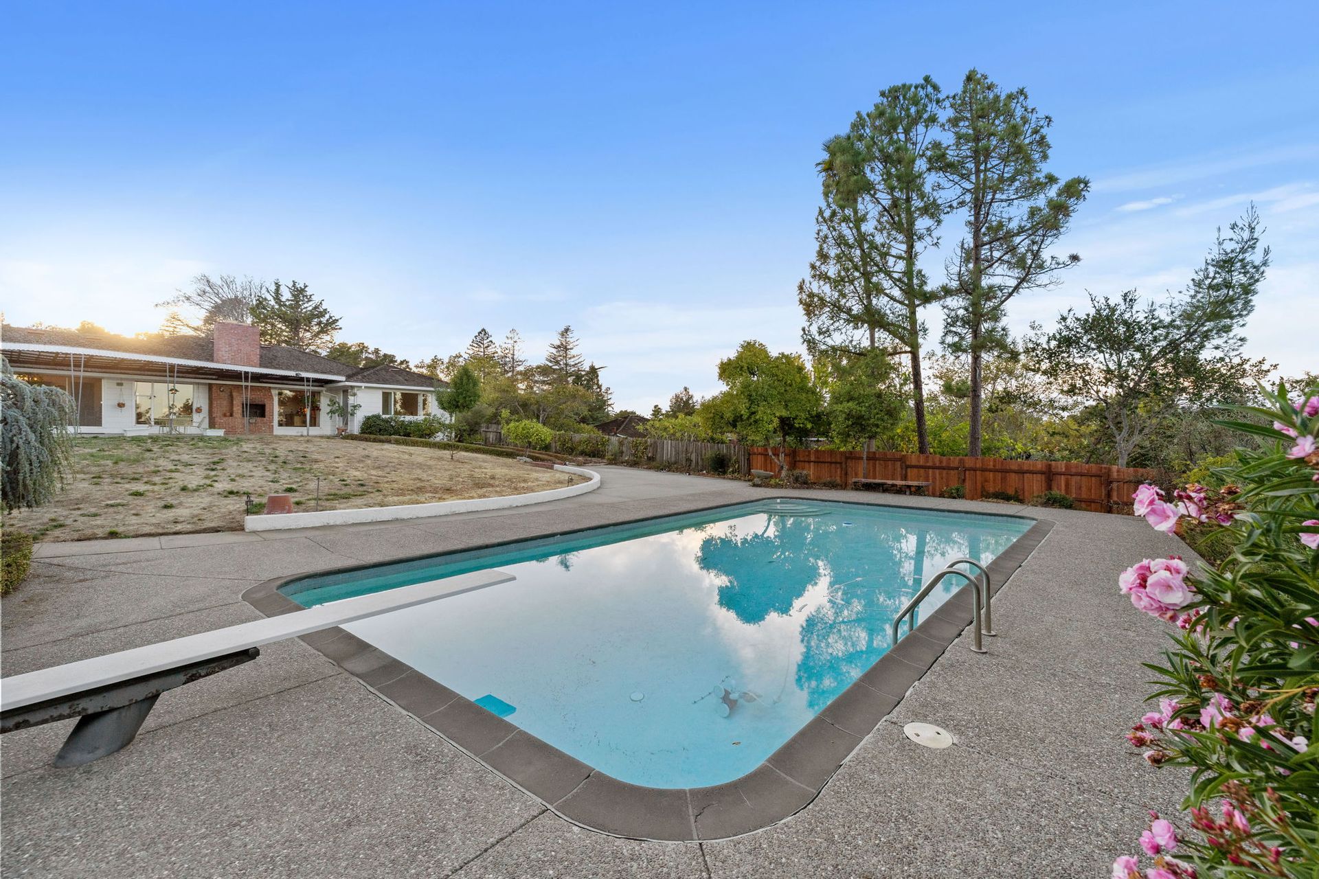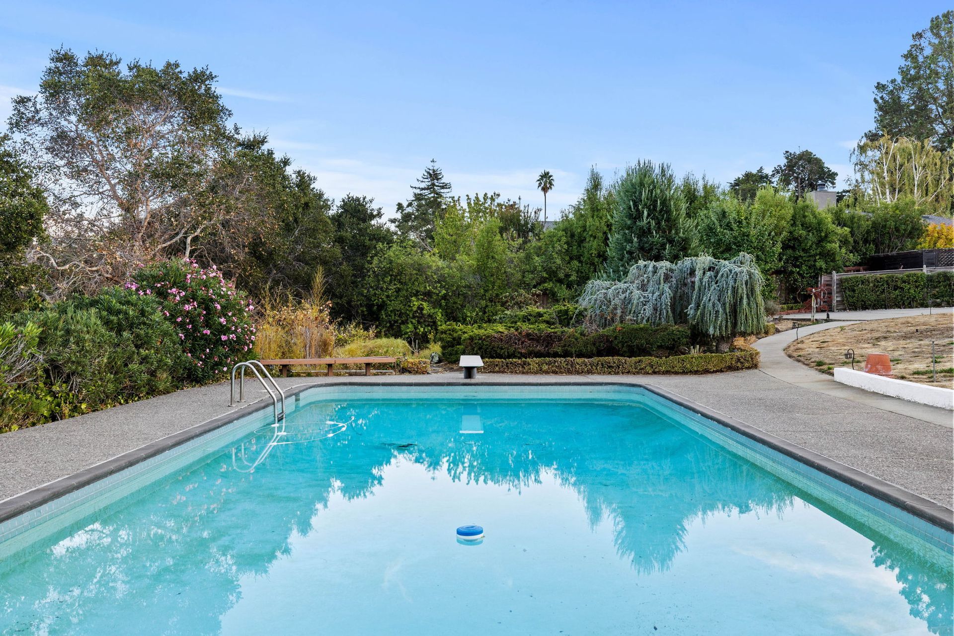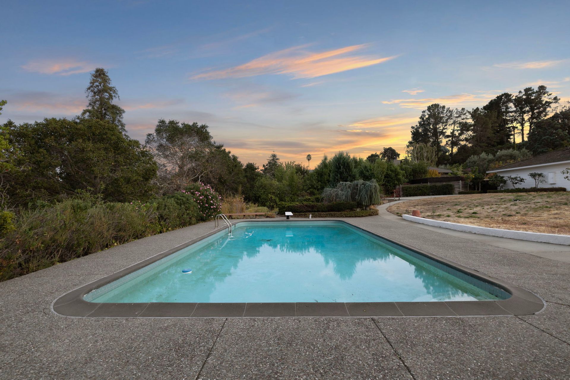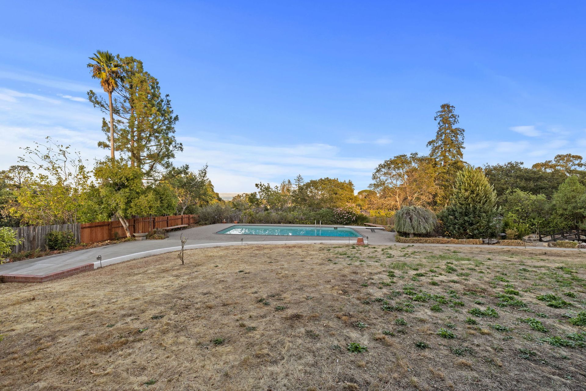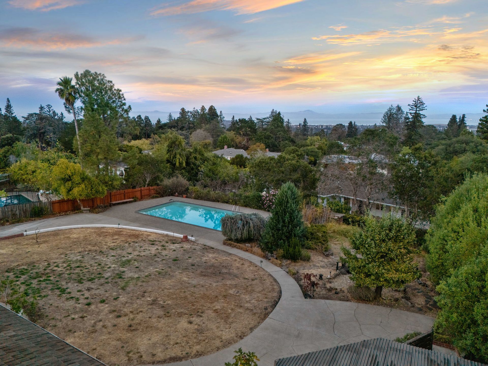 The bedroom wing includes the expansive primary en-suite with gorgeous views and opens to the patio and yard beyond. Two spacious secondary bedrooms and hall bath complete the private quarters. Outside, the patio embodies quintessential California living, serving as an extension of the home with ample space for both outdoor lounging and dining. Perfect for entertaining, it provides an ideal setting for gatherings, from casual barbecues to elegant dinner parties under the stars. Beyond the patio, a sweeping lawn leads to the pool, offering picturesque views with glimpses of the Bay, enhancing the ambiance for any occasion.