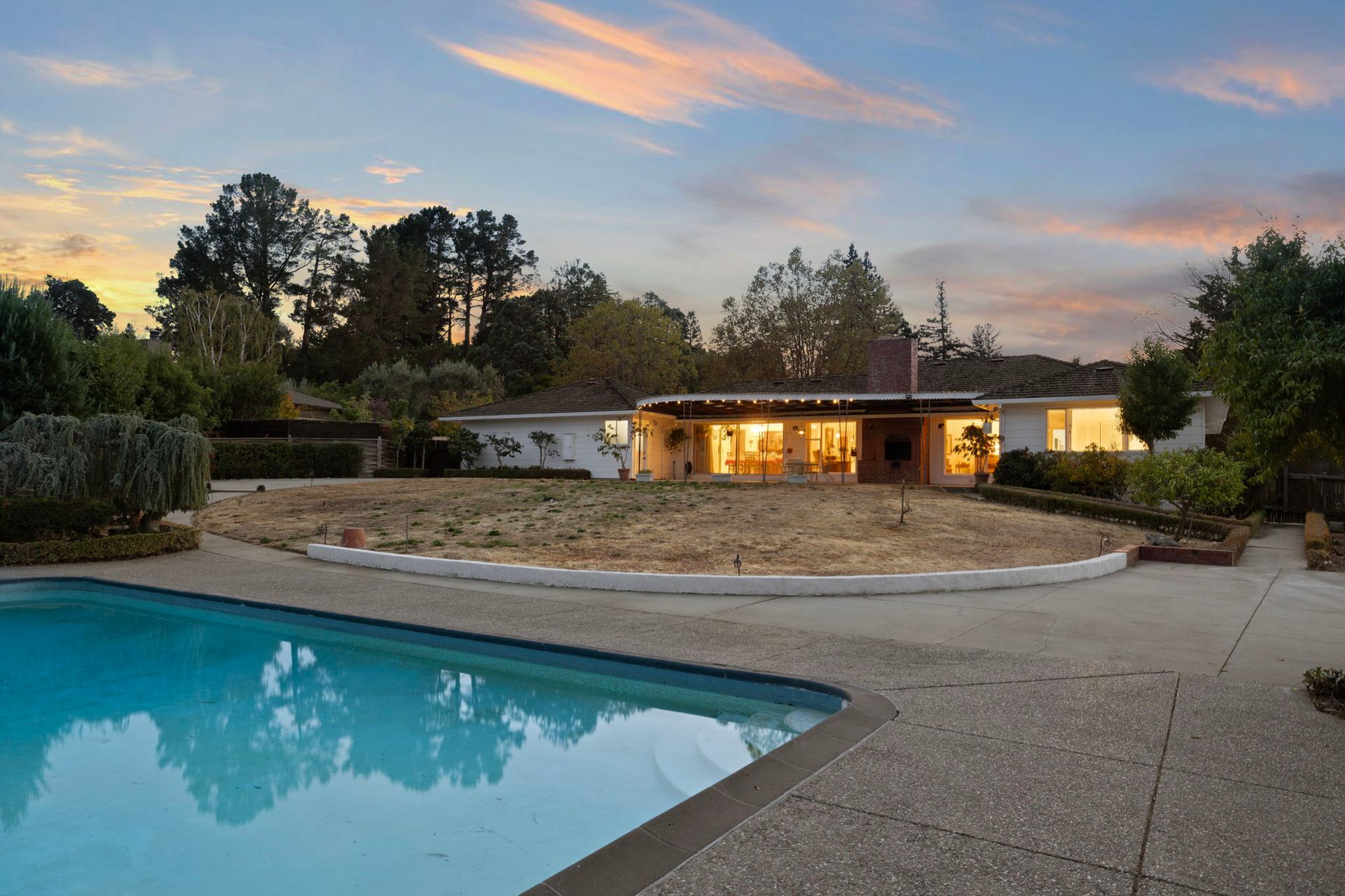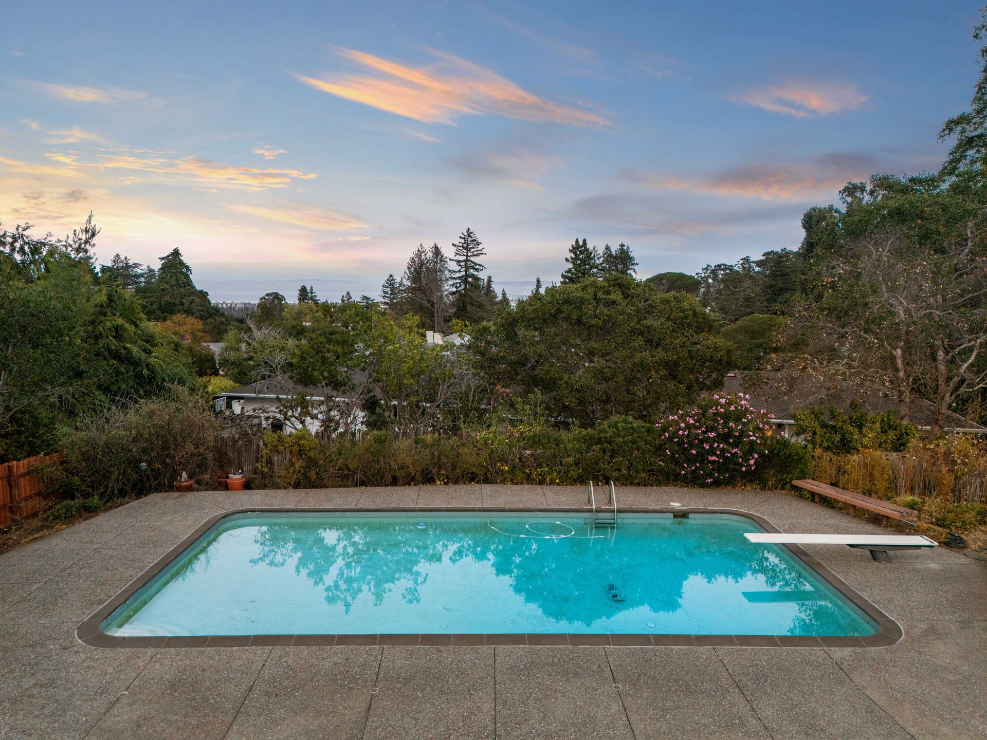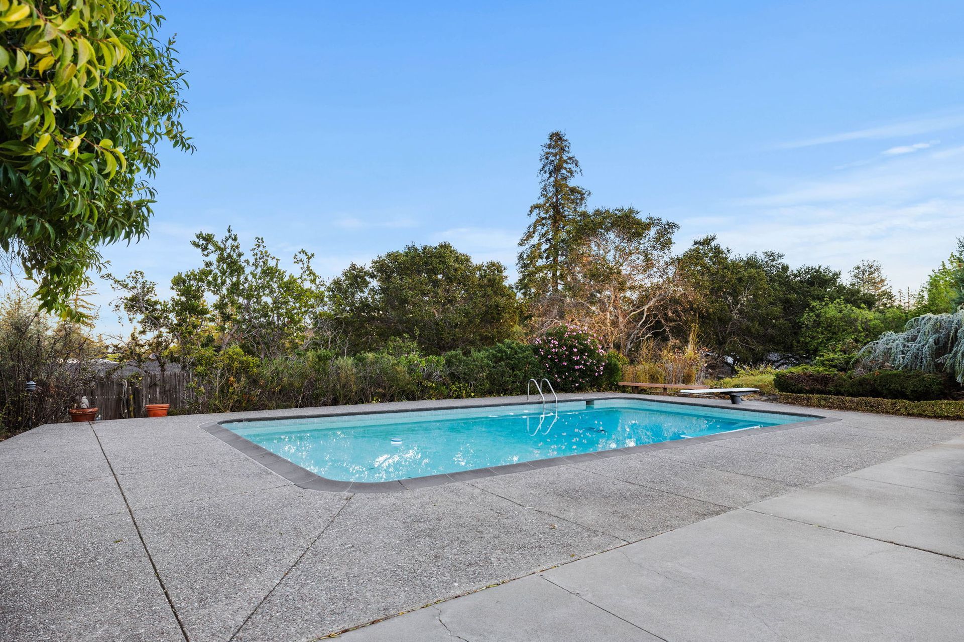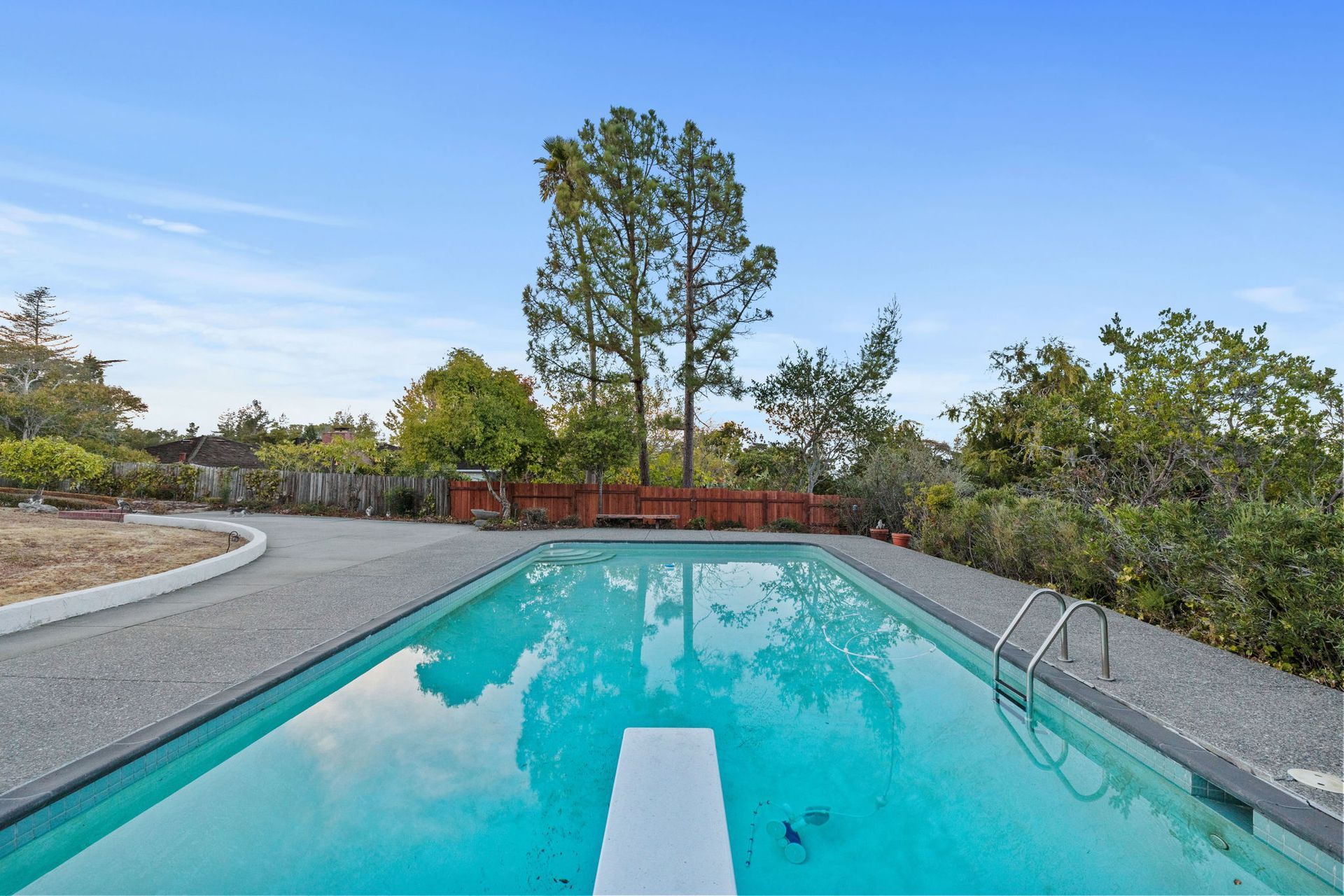The bedroom wing includes the expansive primary en-suite with gorgeous views and opens to the patio and yard beyond. Two spacious secondary bedrooms and hall bath complete the private quarters. Outside, the patio embodies quintessential California living, serving as an extension of the home with ample space for both outdoor lounging and dining. Perfect for entertaining, it provides an ideal setting for gatherings, from casual barbecues to elegant dinner parties under the stars. Beyond the patio, a sweeping lawn leads to the pool, offering picturesque views with glimpses of the Bay, enhancing the ambiance for any occasion.