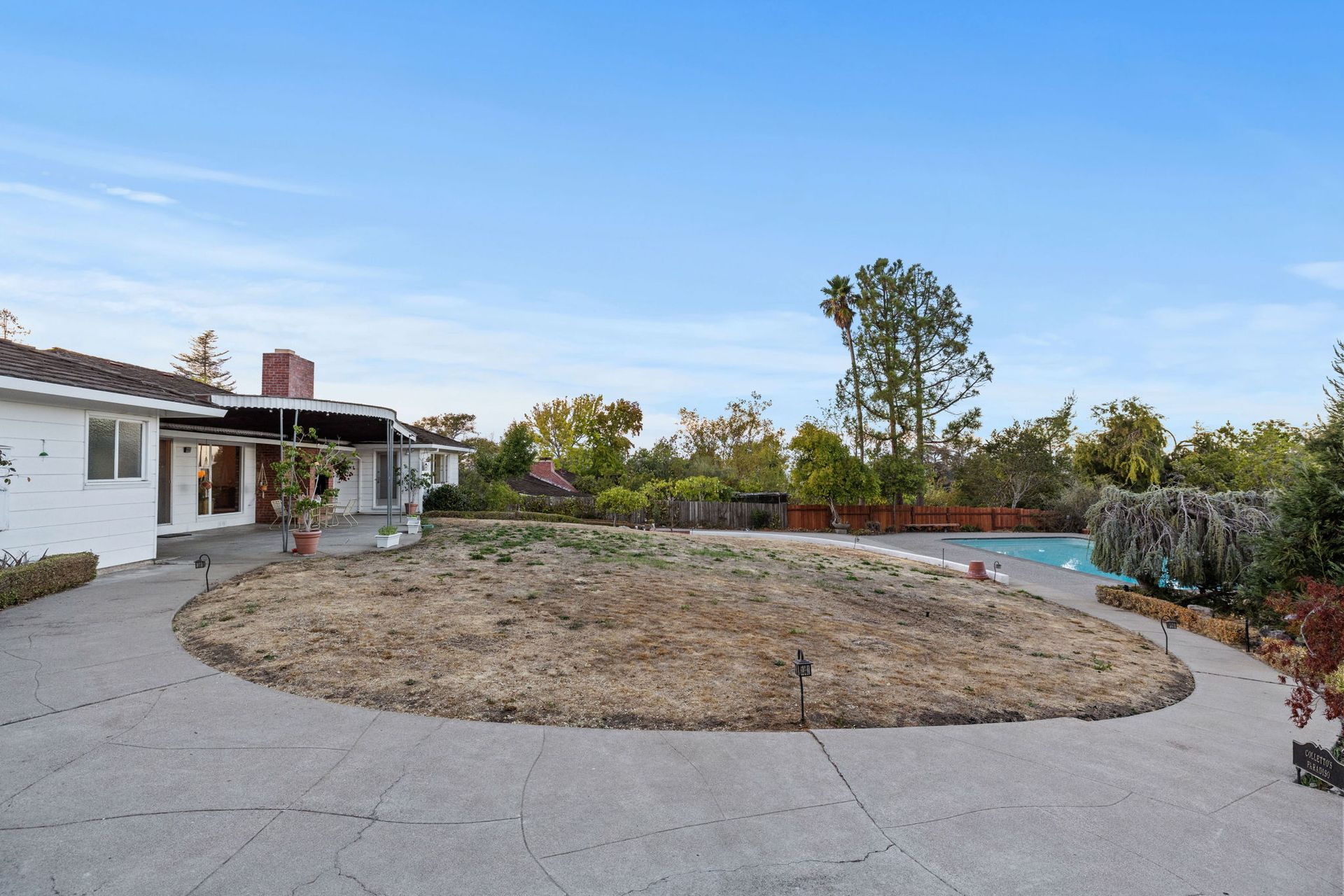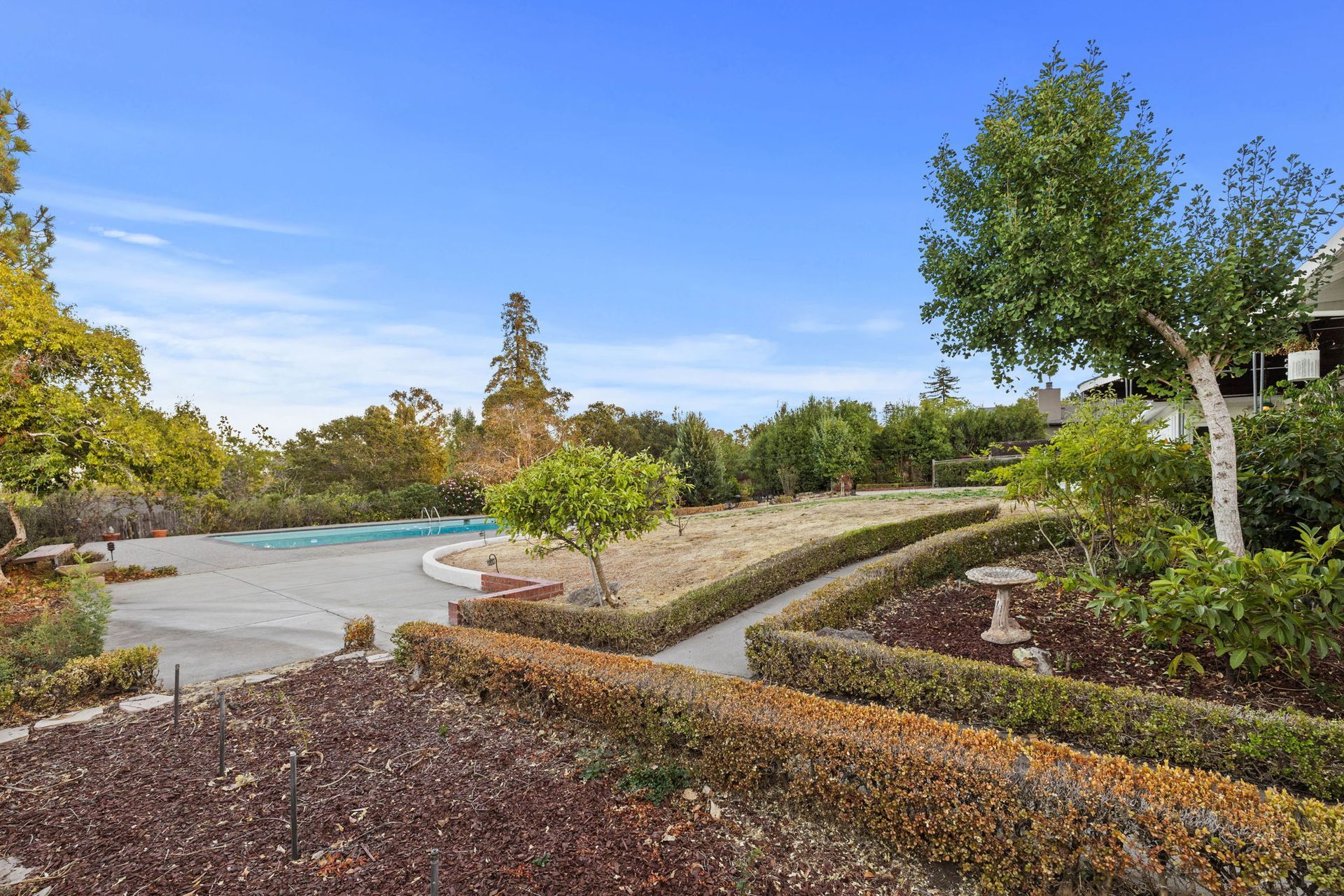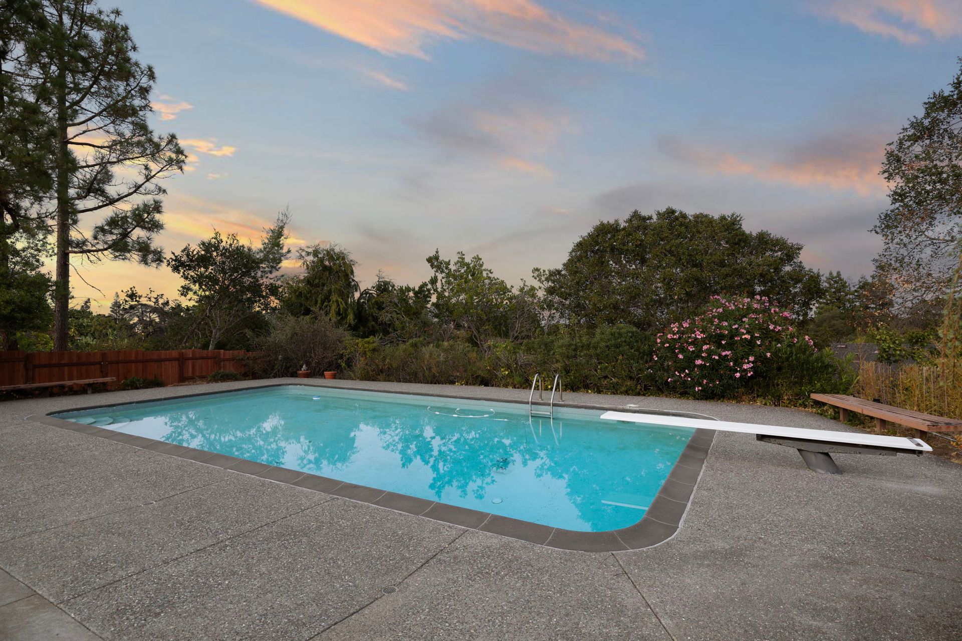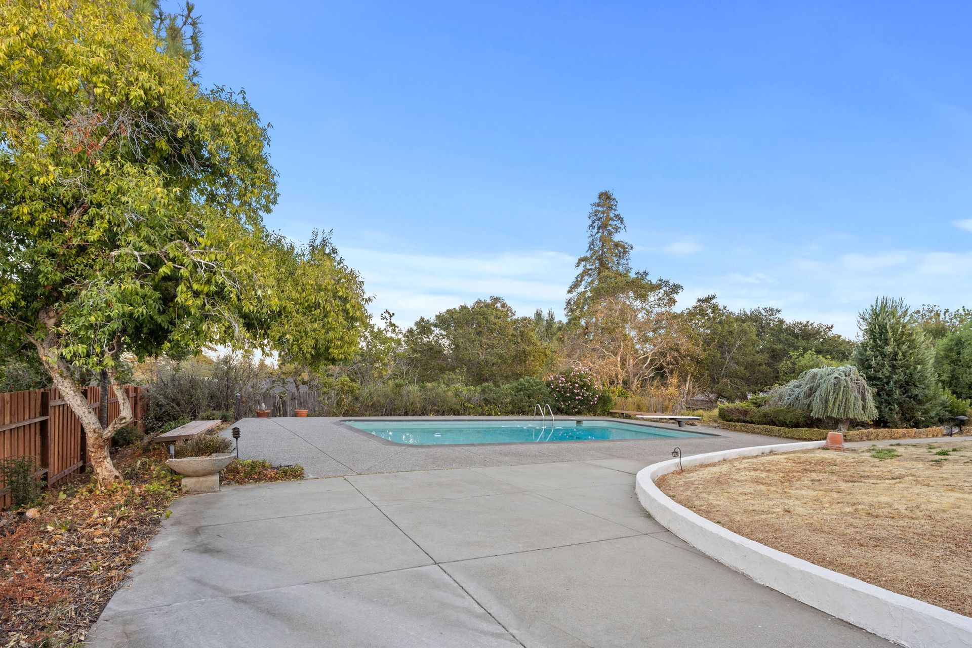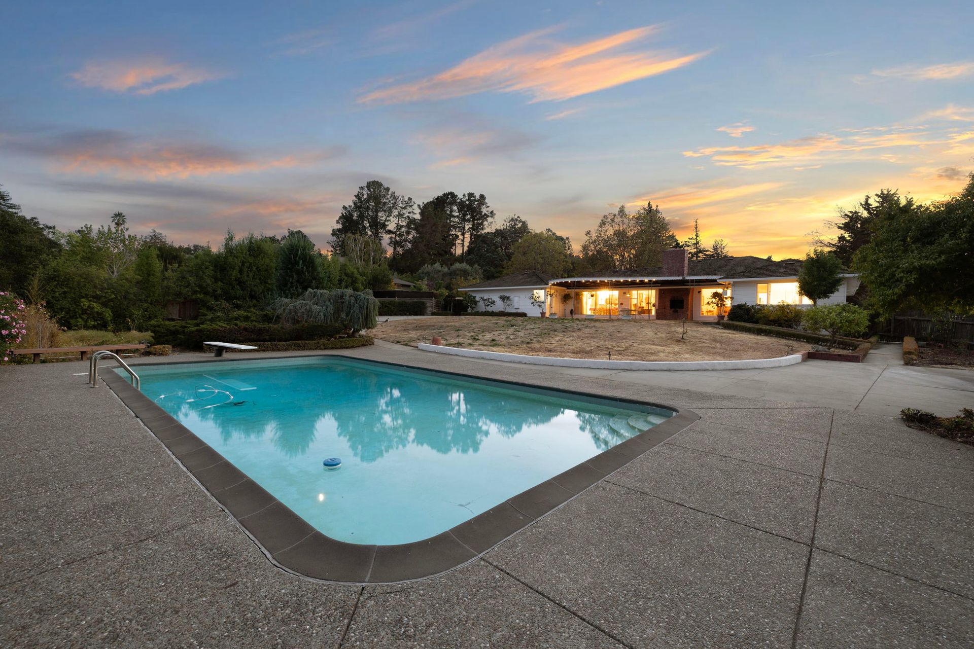 The bedroom wing includes the expansive primary en-suite with gorgeous views and opens to the patio and yard beyond. Two spacious secondary bedrooms and hall bath complete the private quarters. Outside, the patio embodies quintessential California living, serving as an extension of the home with ample space for both outdoor lounging and dining. Perfect for entertaining, it provides an ideal setting for gatherings, from casual barbecues to elegant dinner parties under the stars. Beyond the patio, a sweeping lawn leads to the pool, offering picturesque views with glimpses of the Bay, enhancing the ambiance for any occasion.