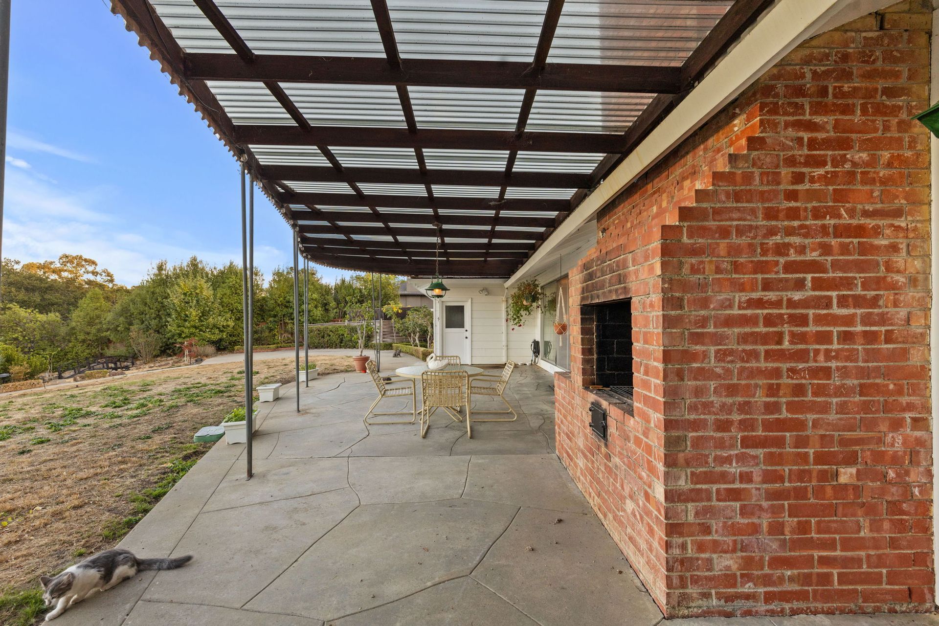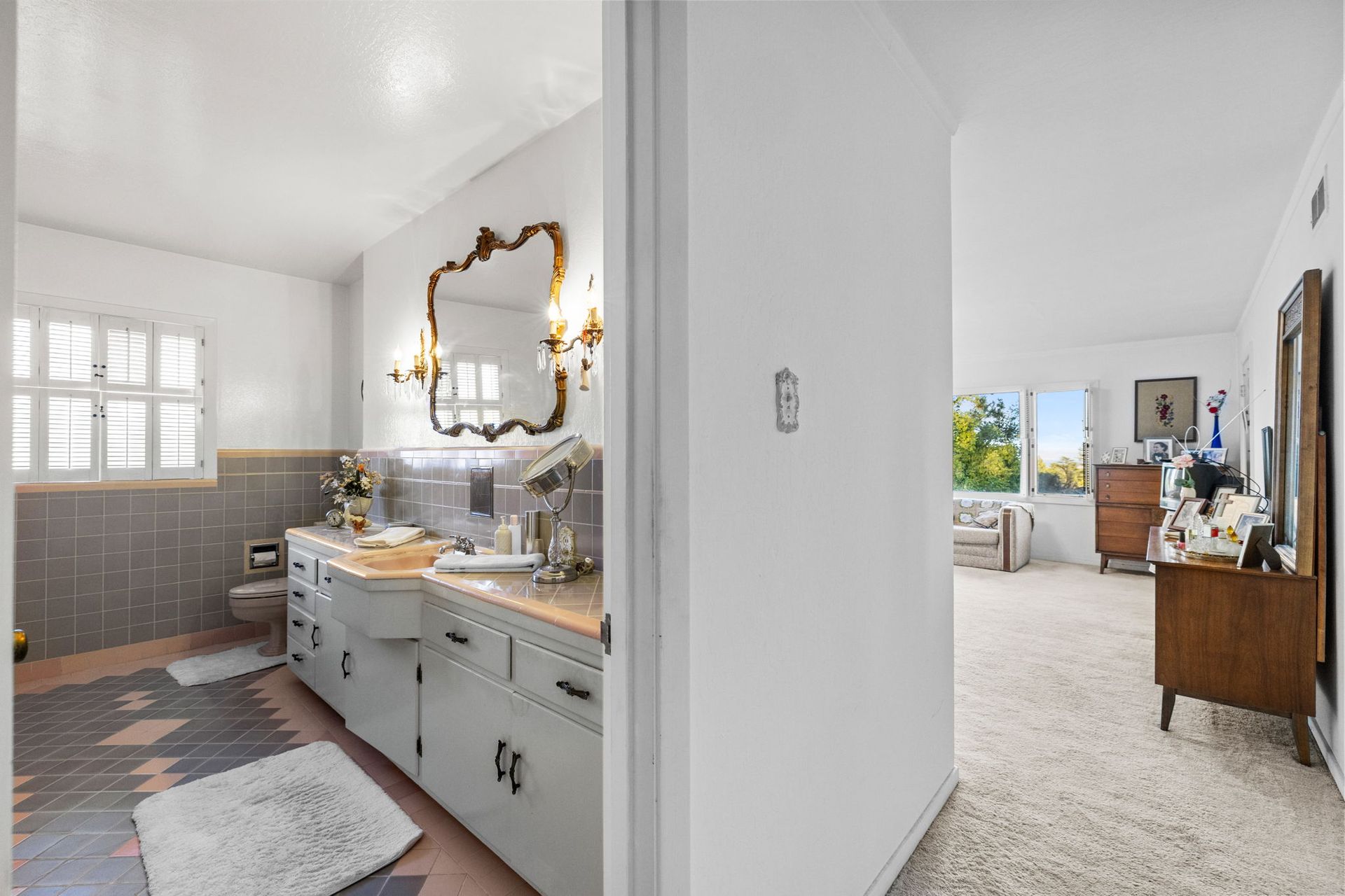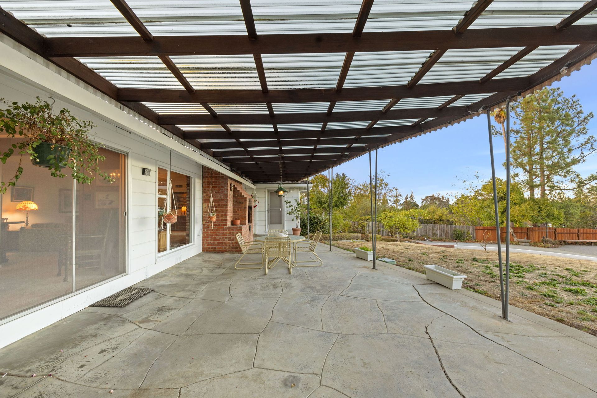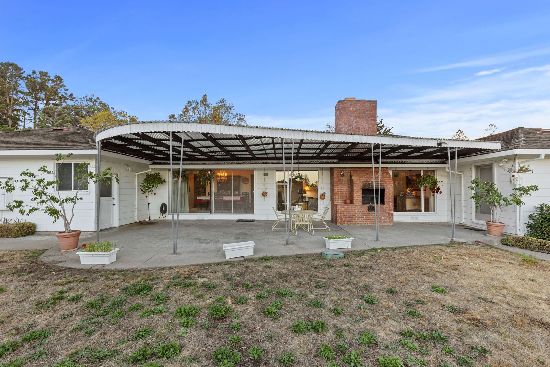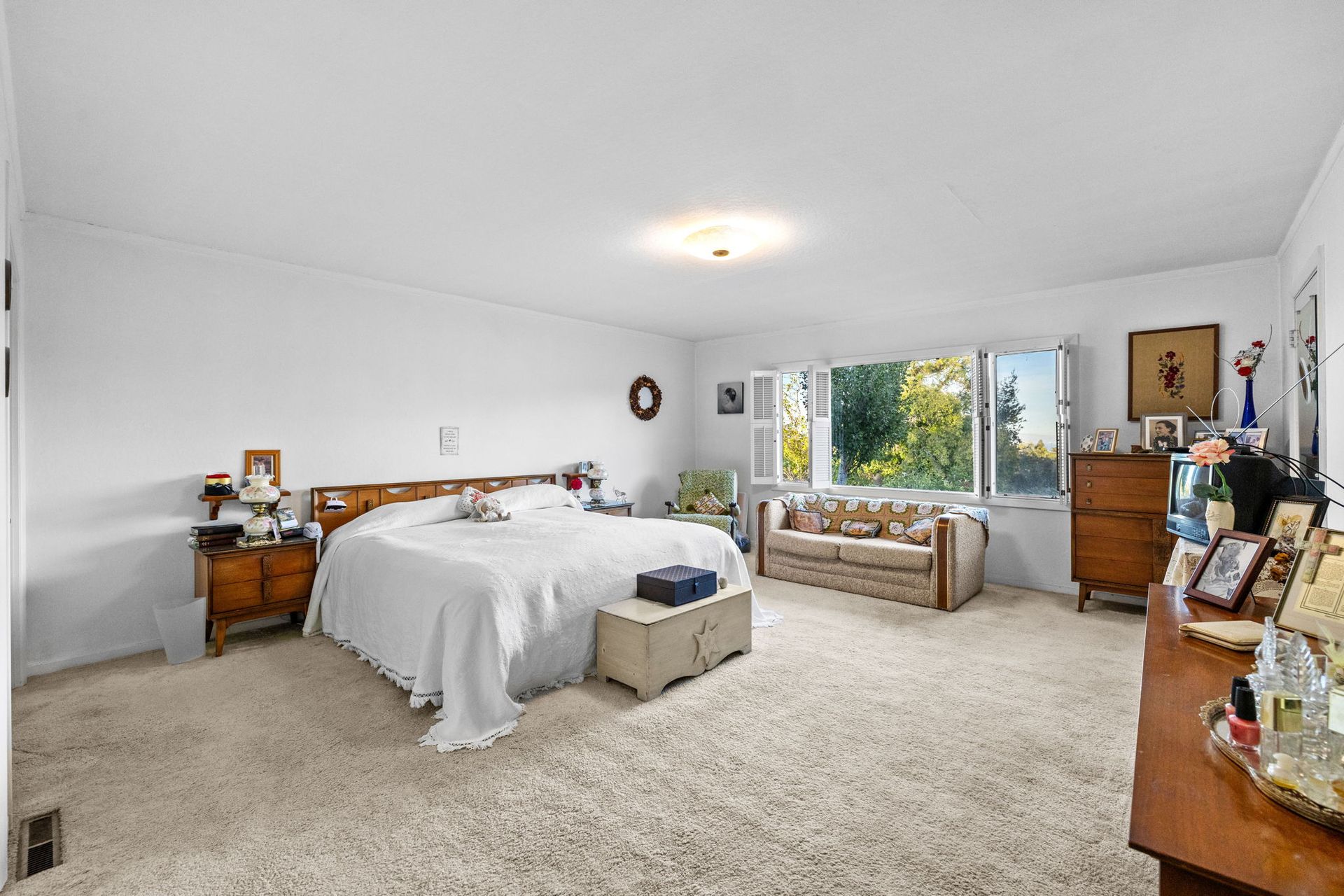 The bedroom wing includes the expansive primary en-suite with gorgeous views and opens to the patio and yard beyond. Two spacious secondary bedrooms and hall bath complete the private quarters. Outside, the patio embodies quintessential California living, serving as an extension of the home with ample space for both outdoor lounging and dining. Perfect for entertaining, it provides an ideal setting for gatherings, from casual barbecues to elegant dinner parties under the stars. Beyond the patio, a sweeping lawn leads to the pool, offering picturesque views with glimpses of the Bay, enhancing the ambiance for any occasion.