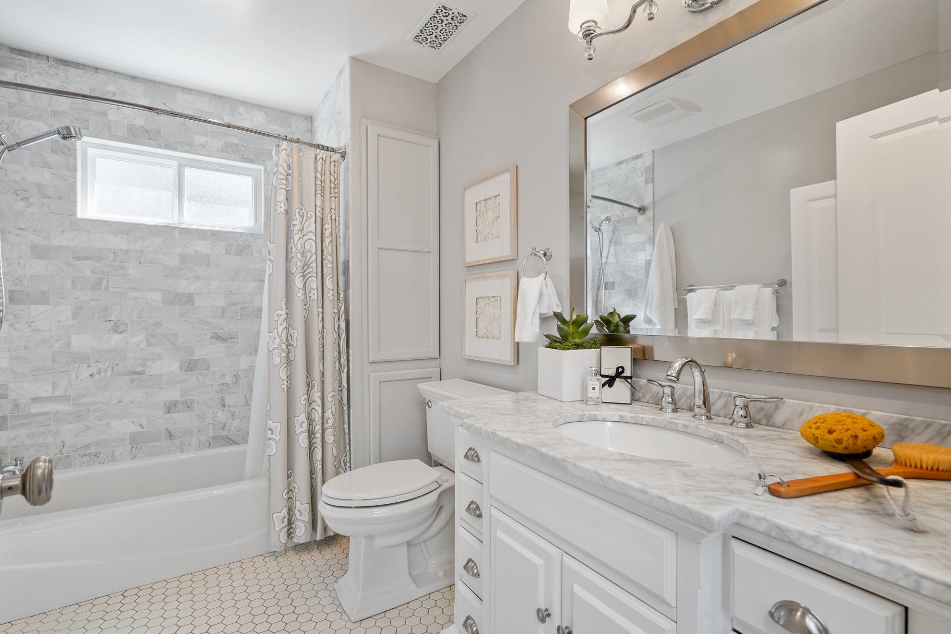 Charm and modern luxury come together superbly at this completely remodeled Sunnybrae home. From the street, a cute walkway leading to the front door is bordered by shrubs, immaculate landscaping and surrounded by emerald green lawns, while a mature Chinese elm provides ample shade and a lovely grace note. Originally built in 1947, the vintage bungalow with its gray stucco façade and front portico adds a distinctive architectural touch to the neighborhood, rounding out the beautiful curb appeal of this home.
