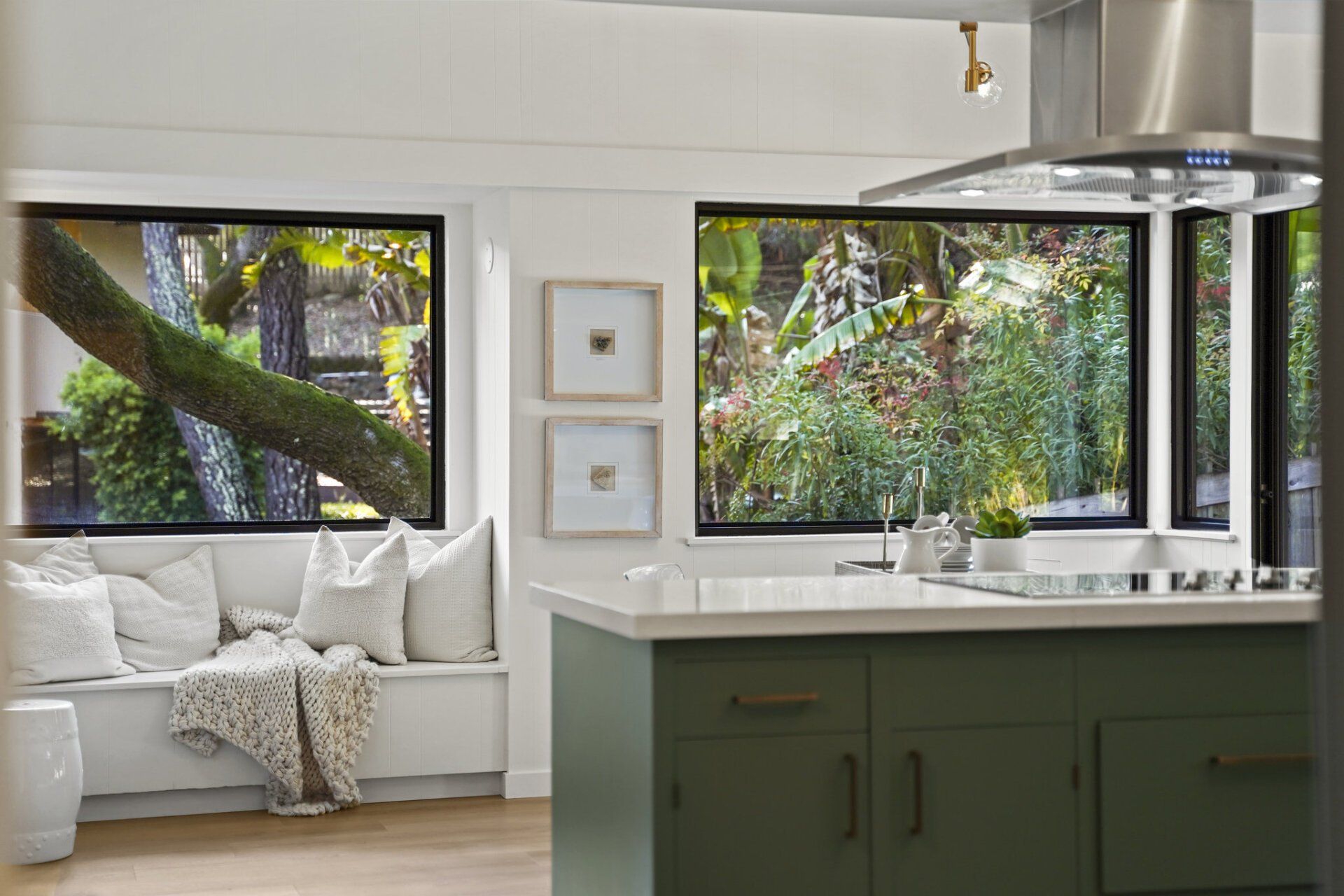 Choose between two separate entries to access this incredibly secluded property. Use the gated driveway from Sandra Road or descend a lovely, ivy-covered hill to reach the front door off San Raymundo Road. A paved sitting area — shaded by a majestic oak tree and wrapped in landscaping — rests beside the freshly painted facade and presents a perfect introduction to this home.